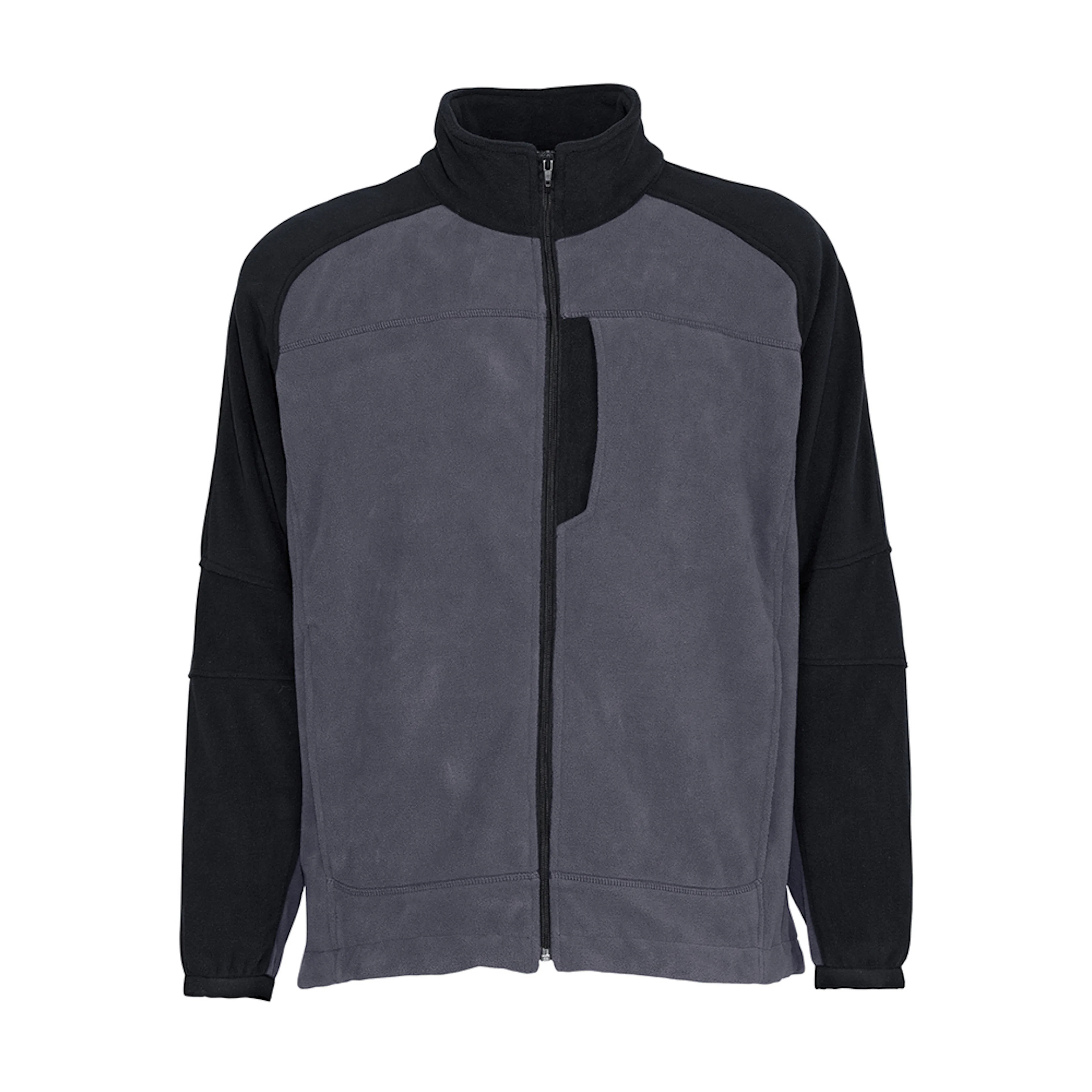 Tvåfärgat. Metervara med antipilling. Hel blixtlås. Bröstficka med blixtlås. Framfickor med blixtlås. Innerfickor. Ergonomiskt utformade ärmar ger god rörelsefrihet. Resår vid handlederna. Resårkanten i nederkanten är reglerbar.