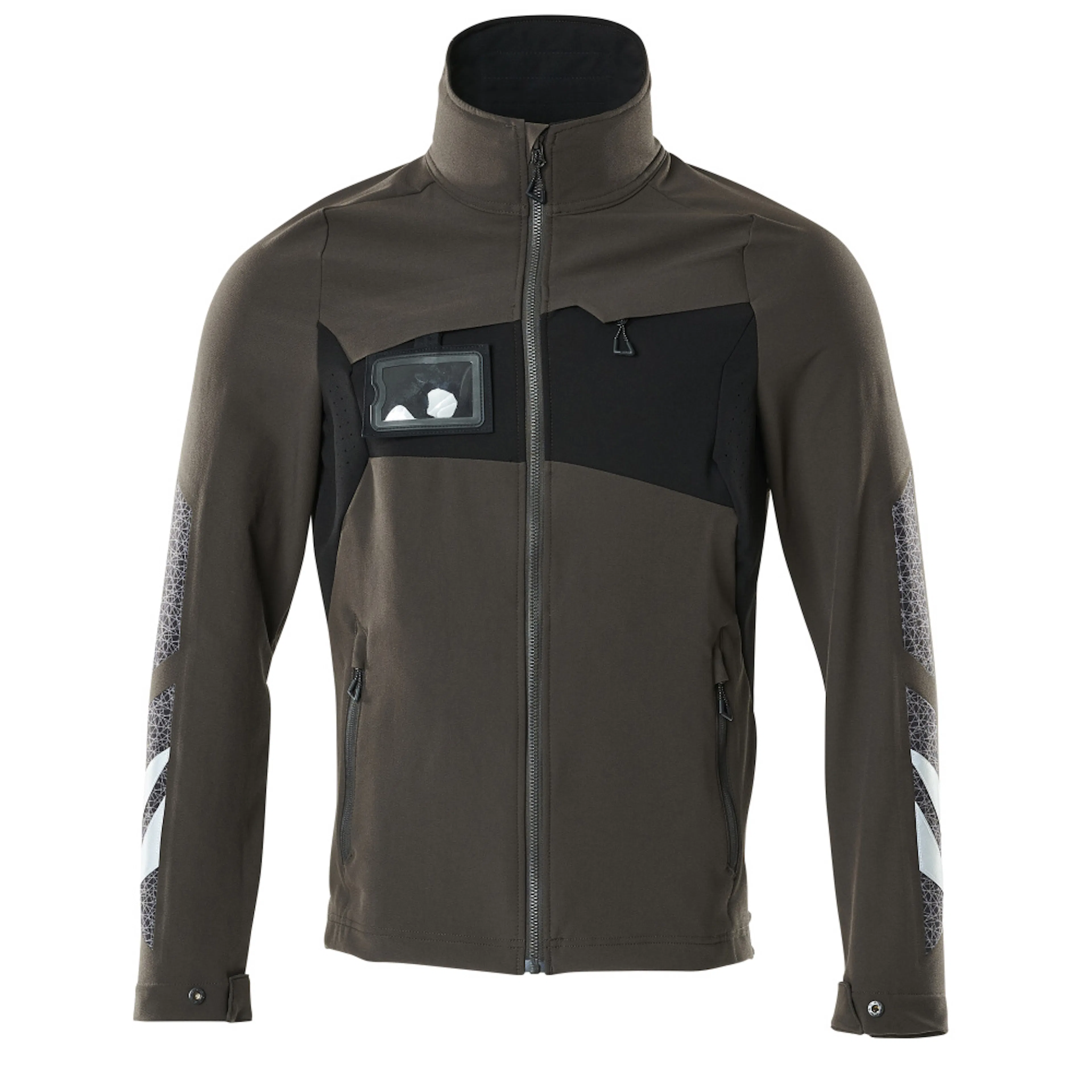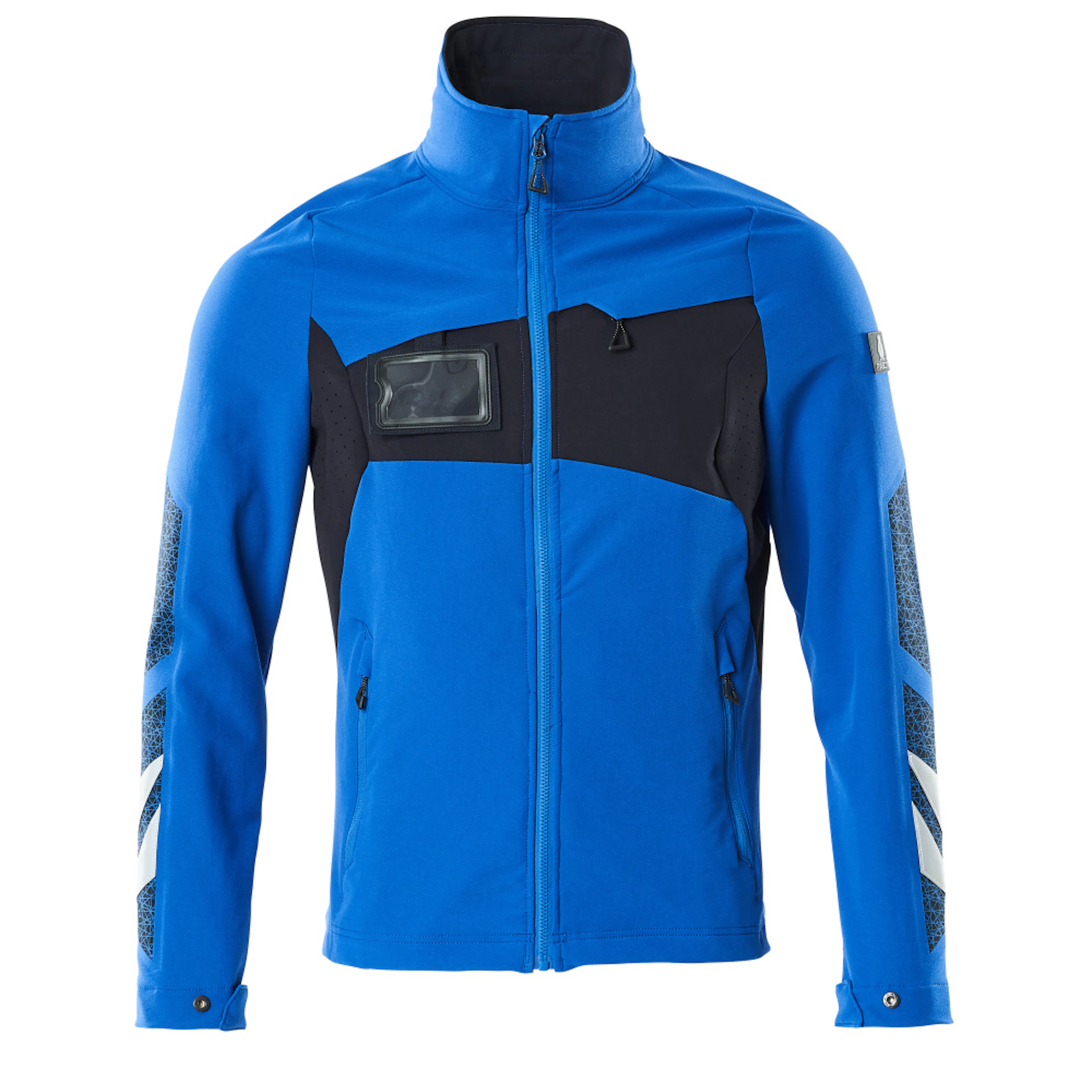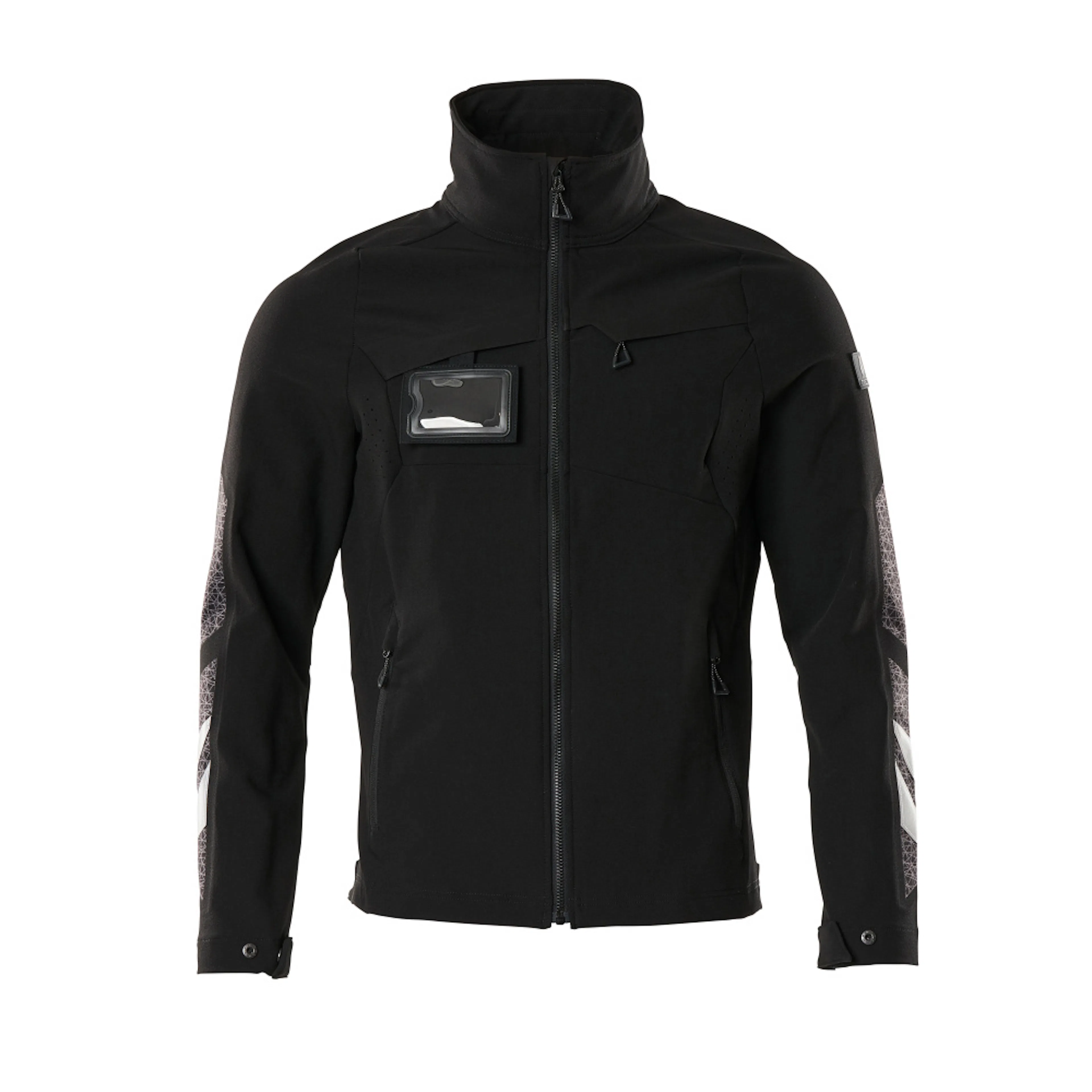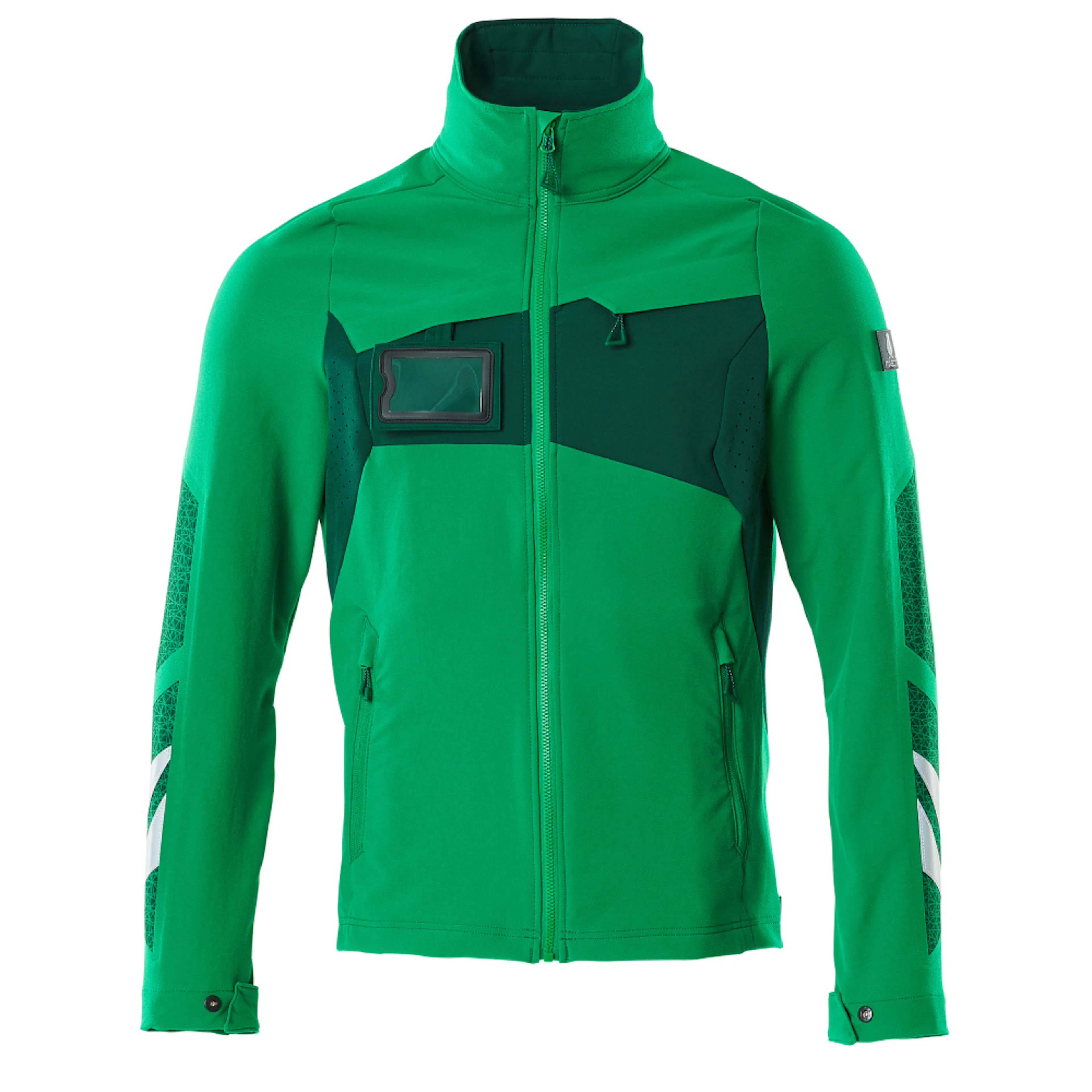 Stretchtyget är elastiskt åt alla håll, vilket ger en unik rörelsefrihet, där inget stramar eller irriterar. Det multifunktionella stretchtyget kombinerar låg vikt med mycket hög slitstyrka, samtidigt som det är vattenavvisande. Tyget tål industritvätt. Knäppning med blixtlås och invändig vindflik så att vinden stängs ute. Ergonomiskt formade ärmar är tillverkade efter armarnas naturliga rörelser. Extra synlig för omgivningarna med hjälp av reflexeffekter.