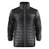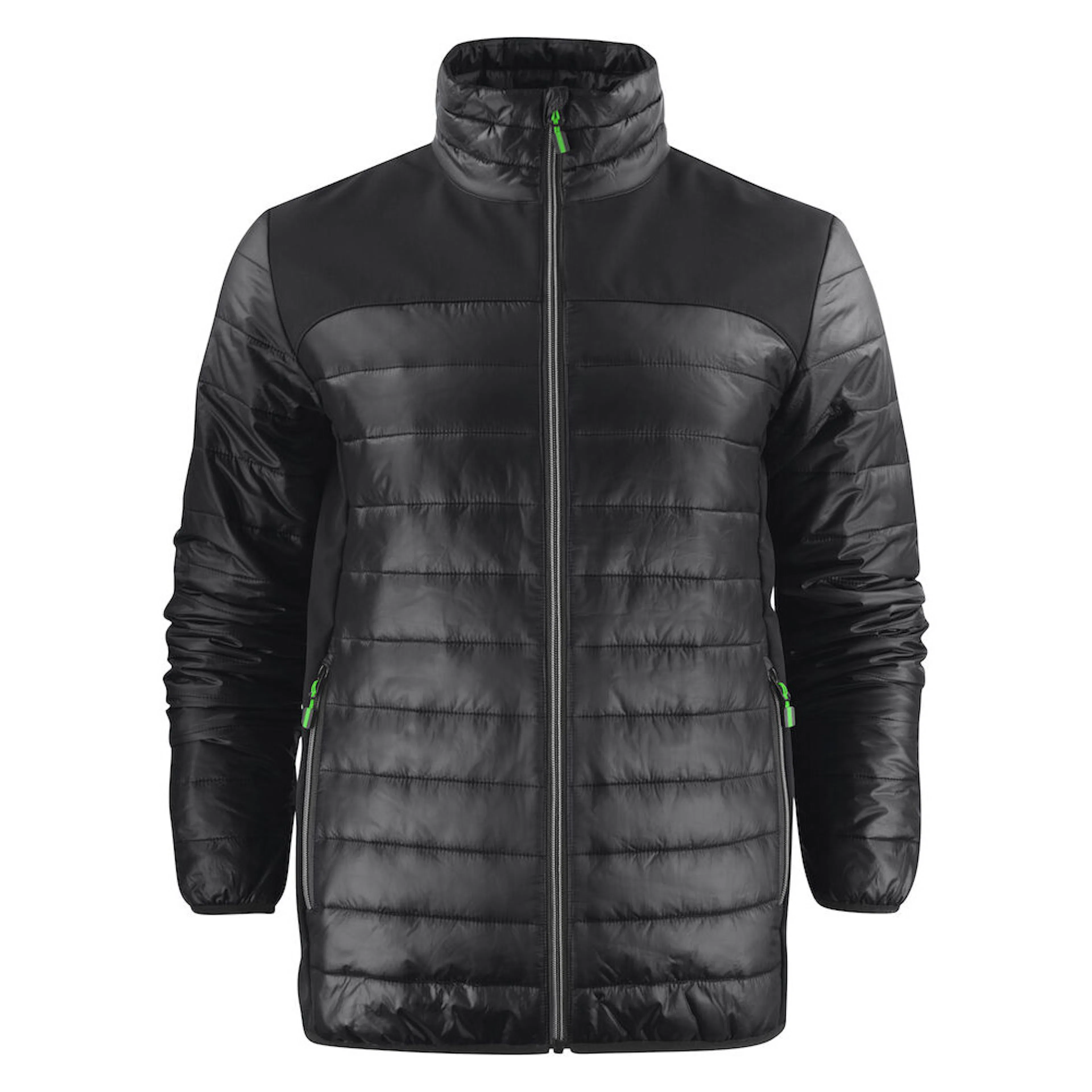 Softshell/lättviktsjacka med ok och sidopaneler i softshell (tyg 1). Bål och ärmar av vadderat, lättviktsmaterial (tyg 2). Blixtlås och zip pullers i Printer Essentials-manér.