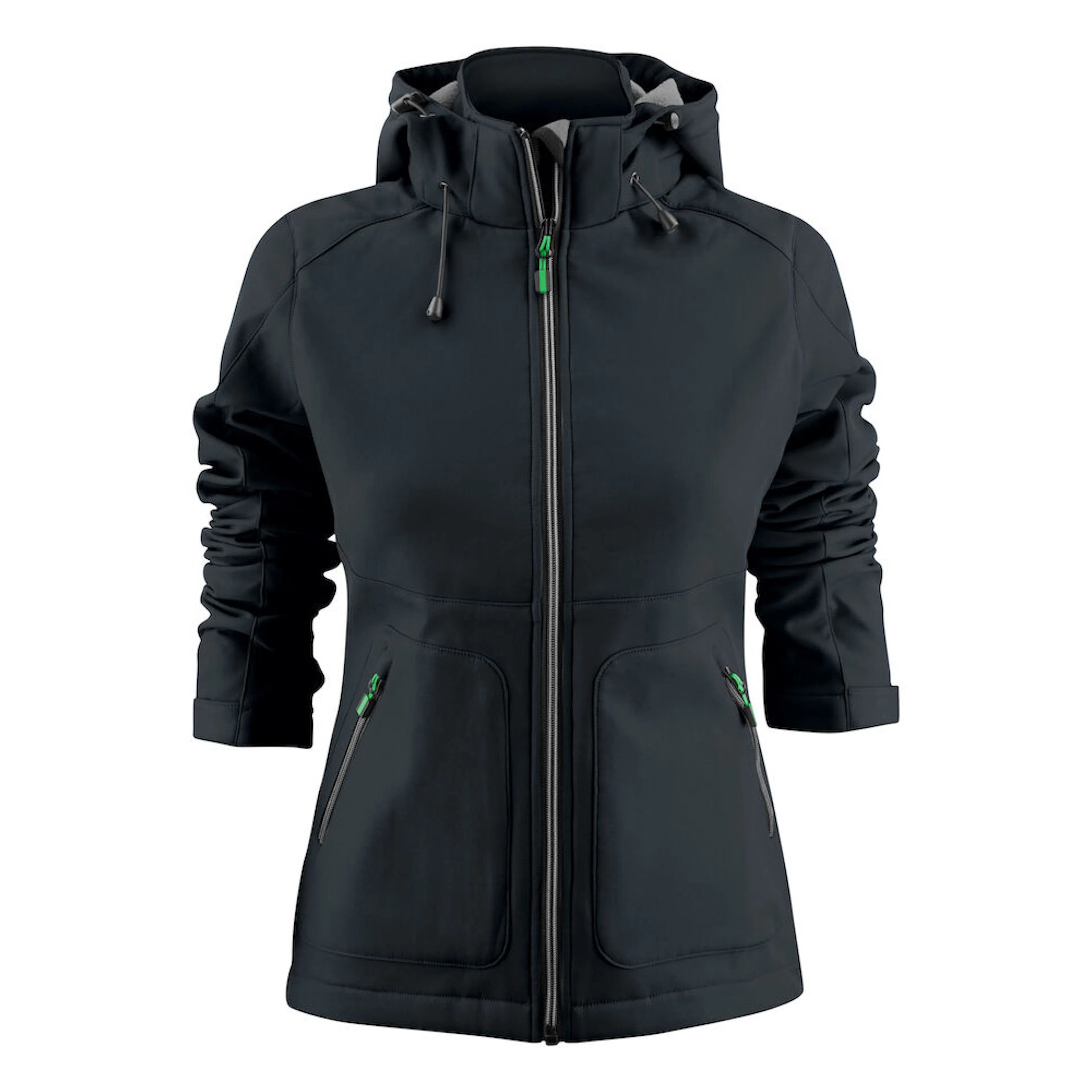 Softshell jacka med avtagbar huva. 96% Polyester, 4% Elastan, bondad med 100% fleece, 280 gsm. 3000WP/ 3000Mvp. Reglerbart nedtill med resår och ärm avslut med velcro-straps. Reflex piping bak för högre synbarhet. Blixtlås och zip pullers på klassiskt Printer Essentials manér.
