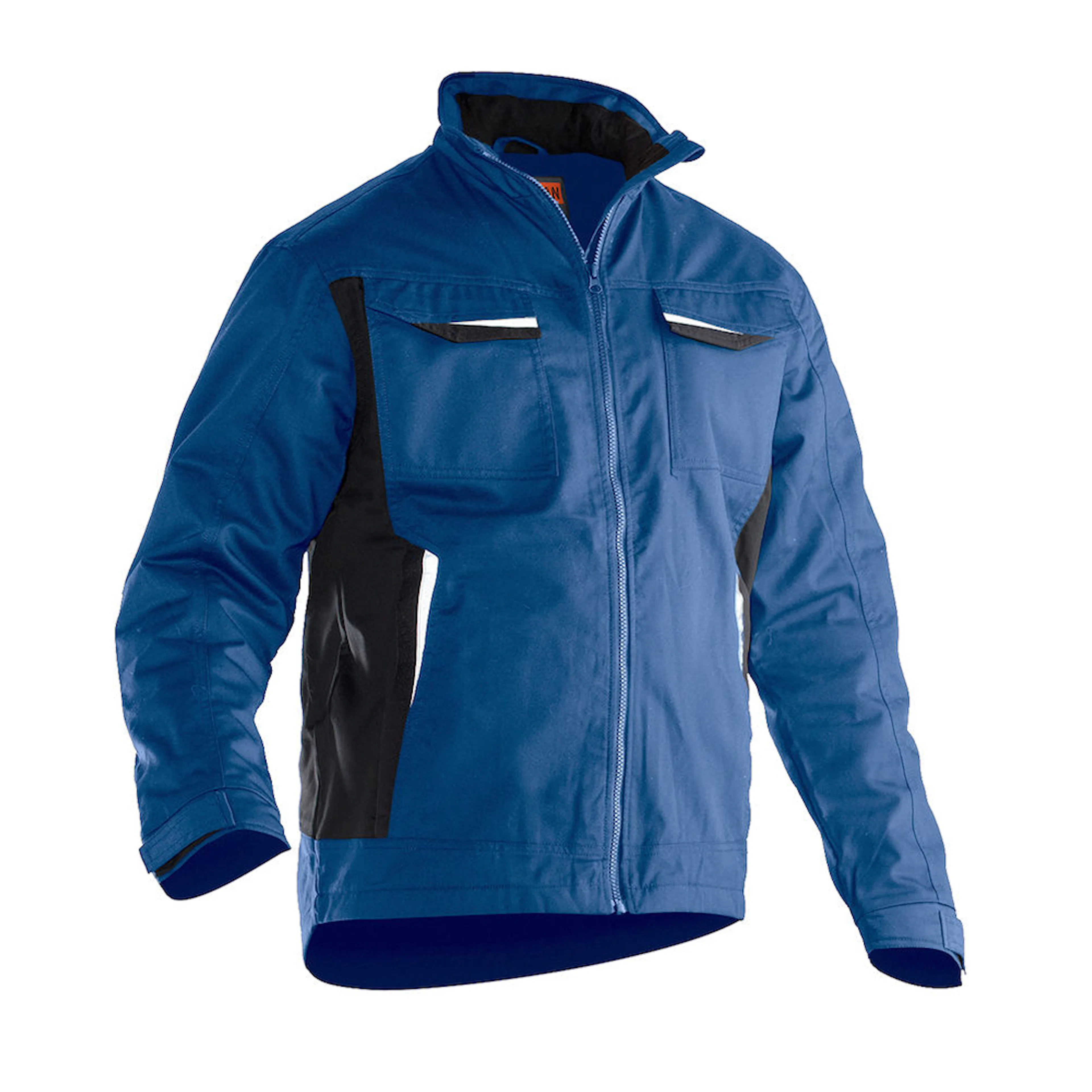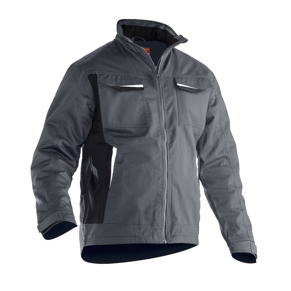 Servicejacka i lättskött polyester/bomull. Två bröstfickor med kardborrestängning, D-ring i vänster bröstficka för ID-kort. Borstad mjuk polyester i kragen. Framfickor med blixtlås. Tre innerfickor; två öppna och en för mobiltelefonen. Reglerbart ärmslut. Reflexer framtill på ficklock. Förlängd i rygg med reflexpasspoal.