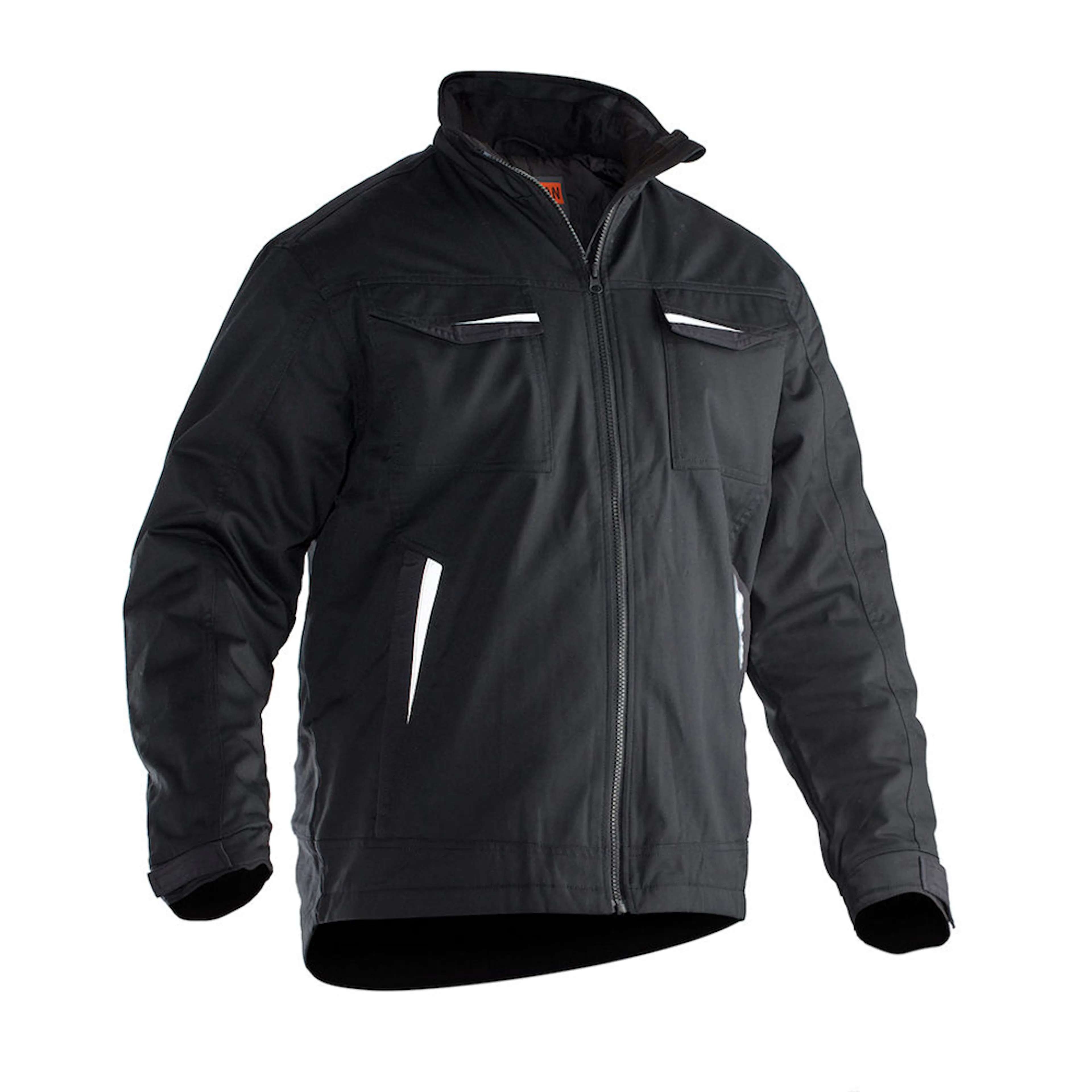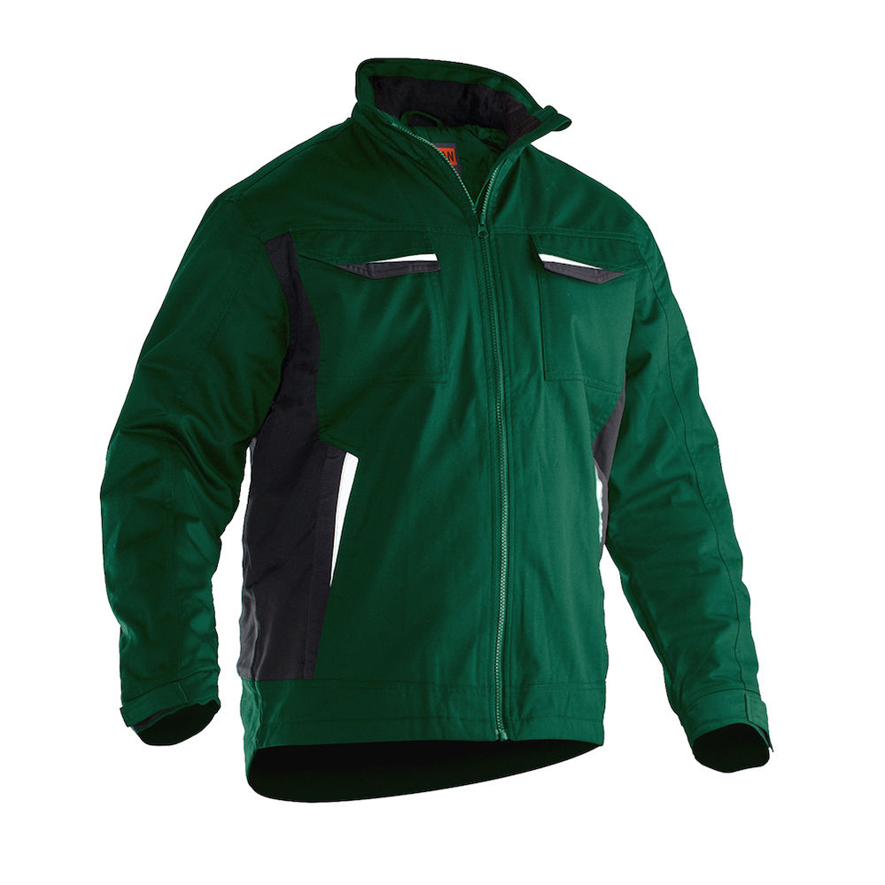 Quiltfodrad servicejacka i lättskött polyester/bomull. Två bröstfickor med kardborrestängning, D-ring i vänster bröstficka för ID-kort. Borstad mjuk polyester i kragen. Framfickor med blixtlås. Två innerfickor, en stor för dokument och en för mobiltelefonen. Reglerbart ärmslut och nederkant. Reflexer framtill på ficklock. Förlängd i rygg med reflexpasspoal.