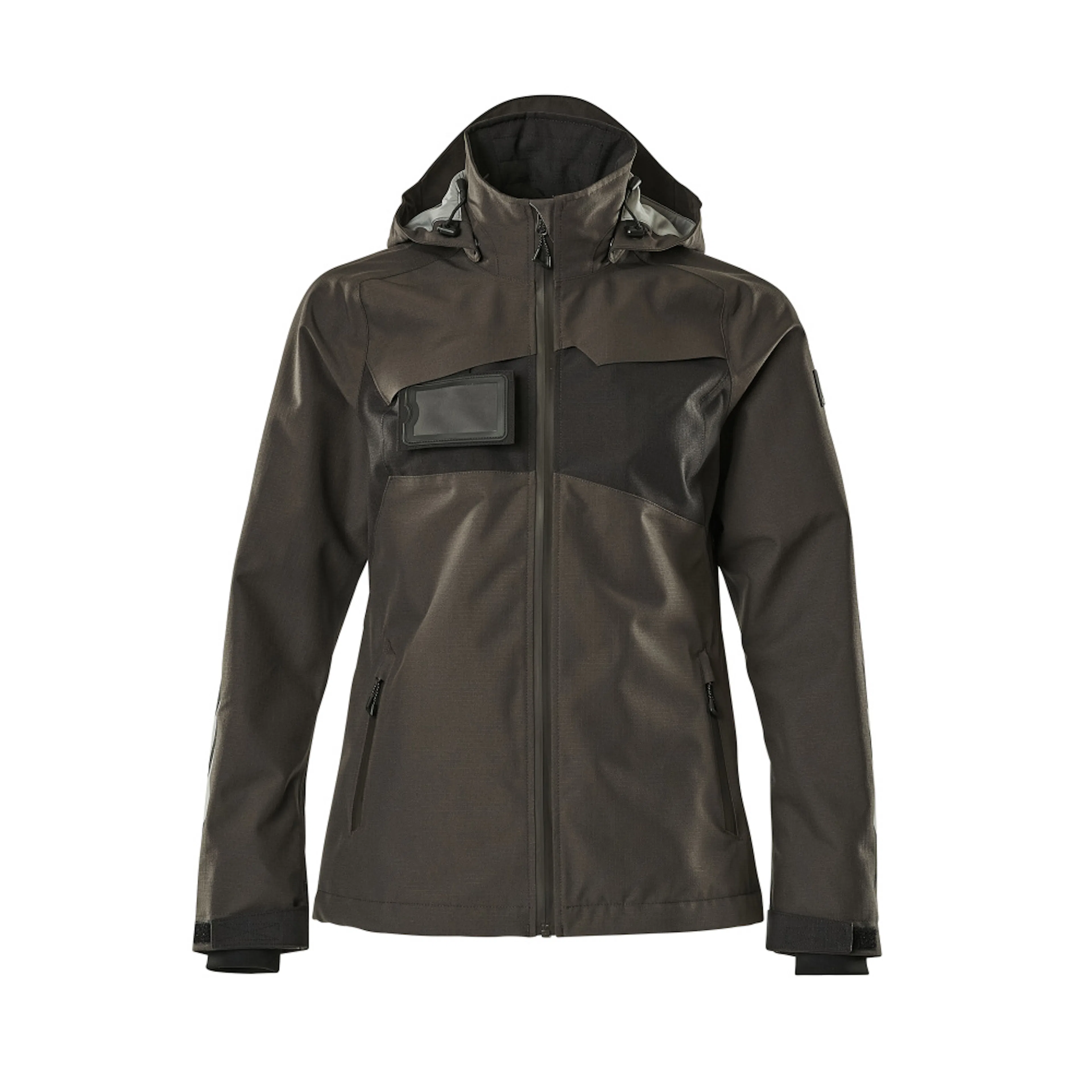 Lady passform. Andas, vind- och vattentät. Sömmarna är tejpade. Huvan är avtagbar, fodret har justerbart resårsnöre. Stängning med blixtlås och invändigt vindfång. Innerficka med blixtlås. ID-kortshållaren är avtagbar. Framfickor med blixtlås. Resårkanten i nederkanten är reglerbar. Ärmar med CORDURA®-förstärkning. Ribbstickning vid handleden (dold i vindskyddet). Med tryck och reflexer.