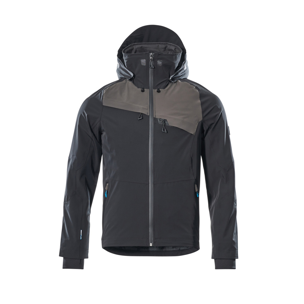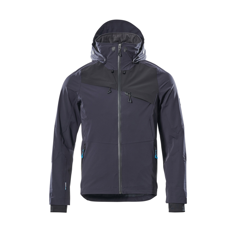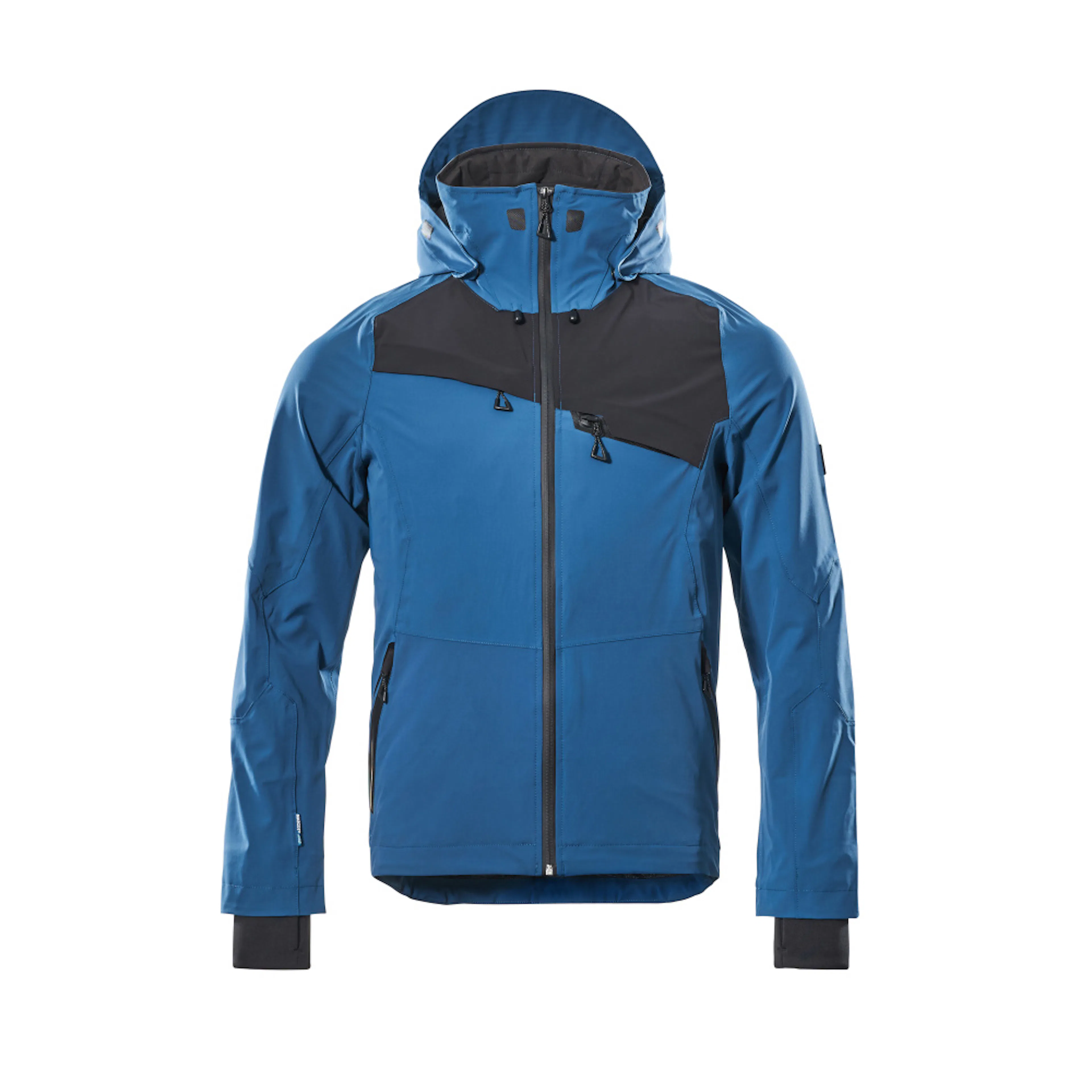Tvåfärgat. Ultimate stretchtyg med låg vikt och hög slitstyrka. Andas, vind- och vattentät. Sömmarna är tejpade. Stängning med vattentätt blixtlås och invändigt vindfång. Huvan är avtagbar, fodret har justerbart resårsnöre. Hög krage med justerbart resårband. Innerficka med blixtlås. Bröstfickor med blixtlås. Ergonomiskt utformade ärmar ger god rörelsefrihet. Framfickor med blixtlås. Ryggen är förlängd. Resårkanten i nederkanten är reglerbar. Ribbstickning vid handleden (dold i vindskyddet). Hål för tummarna vid handleden. Reflexeffekter.