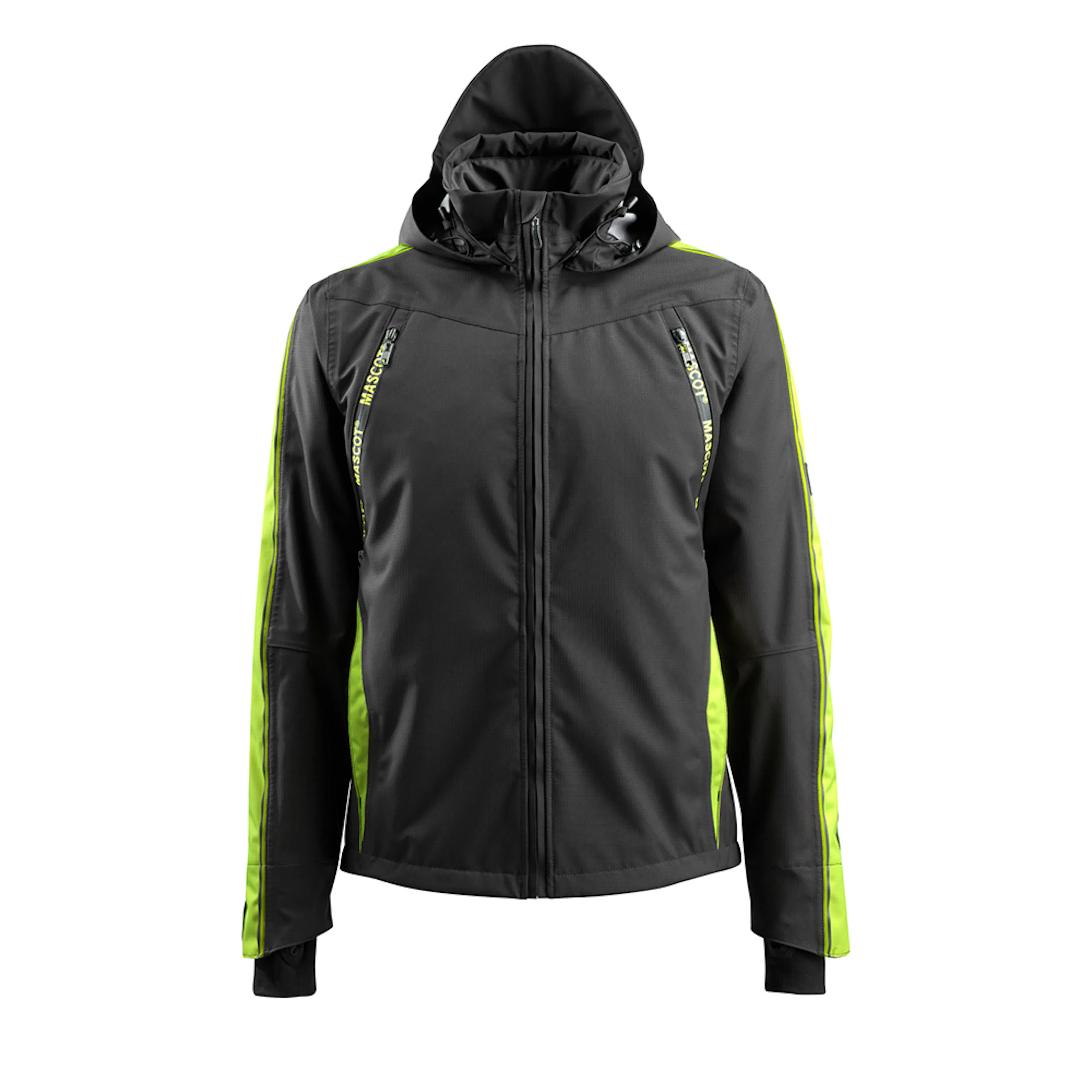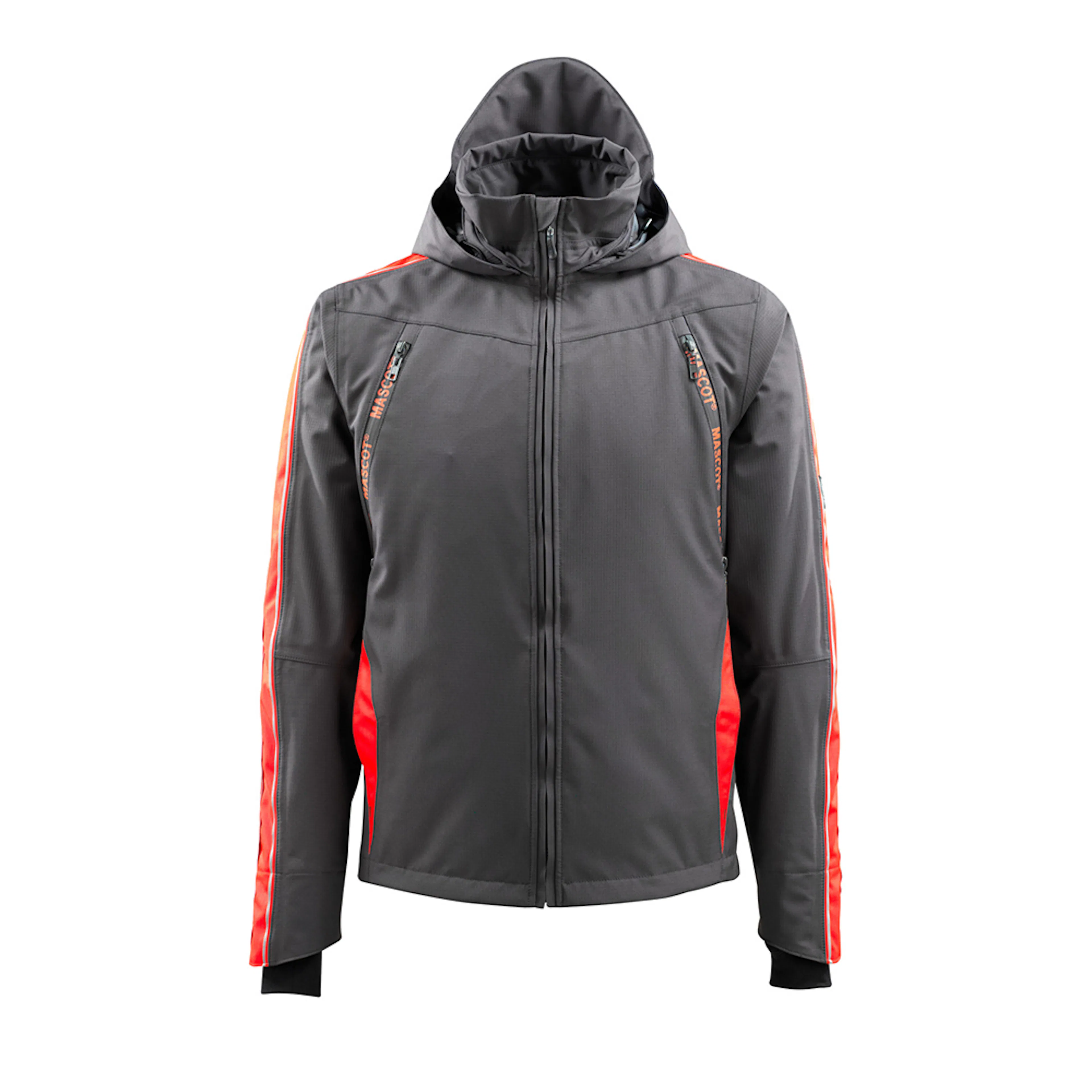 Tvåfärgat. Metervara med stretch. Andas, vind- och vattentät. Sömmarna är tejpade. Huvan är avtagbar, fodret har justerbart resårsnöre. Reglerbar metalltråd i båda sidorna av huvan. Fukttransporterande COOLMAX® ALL SEASON inuti huvan. Nät med ventilation under ärmarna - öppnas med blixtlås. Hög krage. Stängning med blixtlås och invändigt vindfång. Bröstfickor med blixtlås. D-ring. Innerfickor. Ergonomiskt utformade ärmar ger god rörelsefrihet. Invändig vindflik i ärmarna av svettransporterande COOLMAX® ALL SEASON – kan justeras på längden och har öppningar för tummarna. Fickor på framstycket. Ryggen är förlängd. Reflexeffekter.