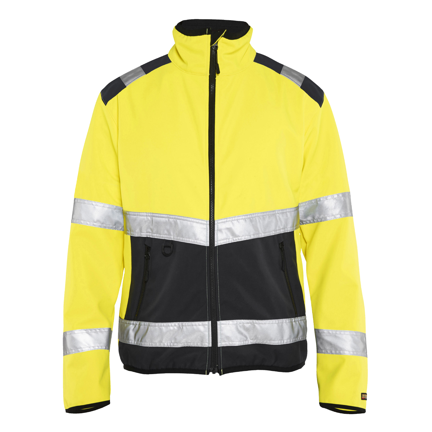Softshelljacka i varsel från Blåkläder med ergonomisk passform som ger mycket god rörelsefrihet. Jackan har 50 mm breda reflexer på bål, ärmar och axlar. Mörka färgfält på smutsutsatta partier. Jackans ytatyg är vattenavvisande med god andningsförmåga samt har behaglig insida i fleece.