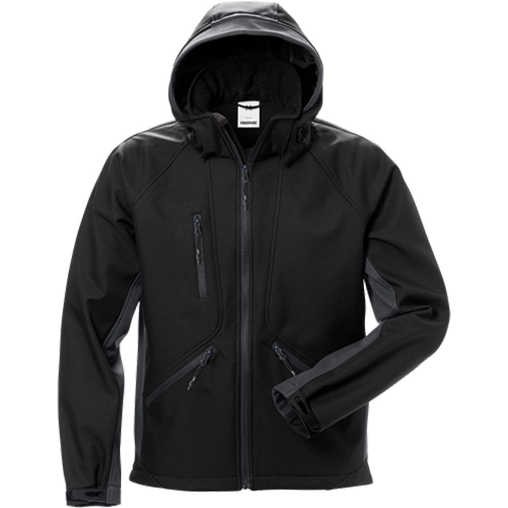 Acode softshell-jacka 1414 SHI. Vindtät och vattenavvisande med andasfunktion / Stretchmaterial / Insida i fleece / Avtagbar huva med dragsko / Dragkedja upp i kragen med invändig frontslå / Bröstficka med dragkedja / 2 framfickor med dragkedja / Reglerbart ärmslut / Reglerbar nederkant med dragsko / Förlängd rygg / OEKO-TEX®-certifierad.