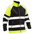 5125 Softshelljacka Varsel . 3-lagers softshell jacka med fleece insida. Vindtät och vattenavvisande. Bröstficka med blixtlås och D-ring för ID-kortshållare på insidan. Rymliga framfickor med blixtlås. Elastiskt ärmslut med tumgrepp. Dragsko i nederkant. Certifierad i varselklass 1 enligt EN ISO 20471.