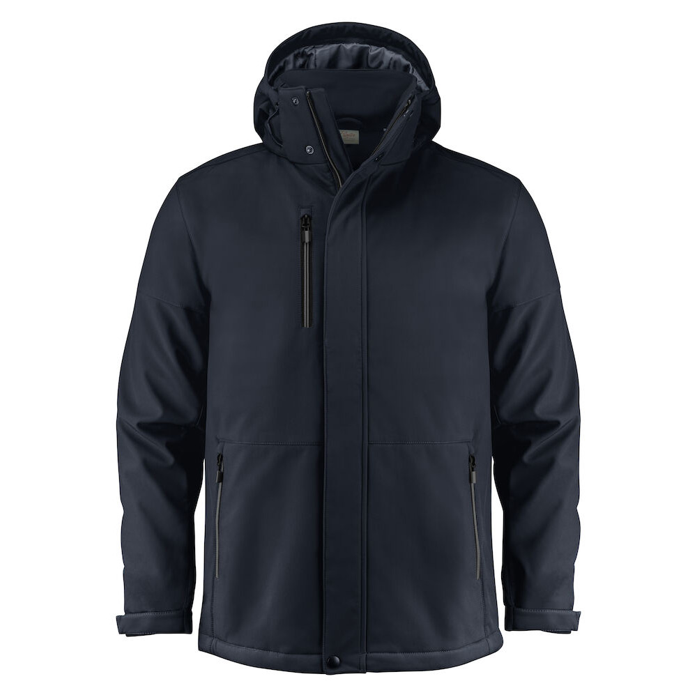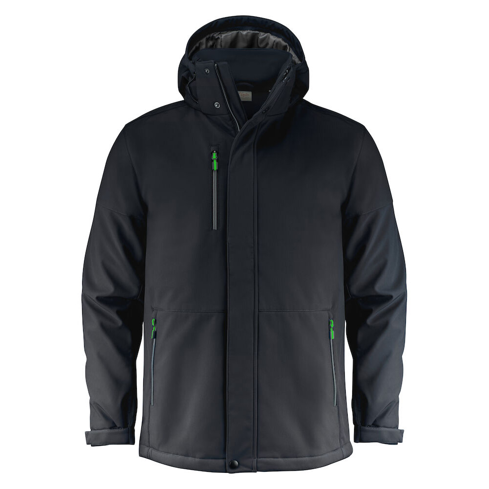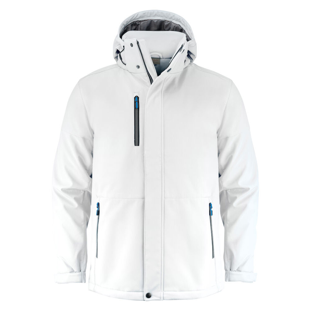 Vadderad softshelljacka med avtagbar huva. Blixtlåsskydd med tryckknappar mitt fram. Dragsko i huva och nederkant samt kardborrejustering i ärmavslut. Två innerfickor med dragkedja. Reflekterande passpoal i nedre ryggen. Avrivbar nacketikett och separat storleksetikett. Tvättchipficka vid inre vänstra sidosömmen. Dragkedja i kontrastfärg. Zip pullers i flera färger säljs separat. Öko-Tex 100-certifierad. Förpackad i en komposterbar påse.
