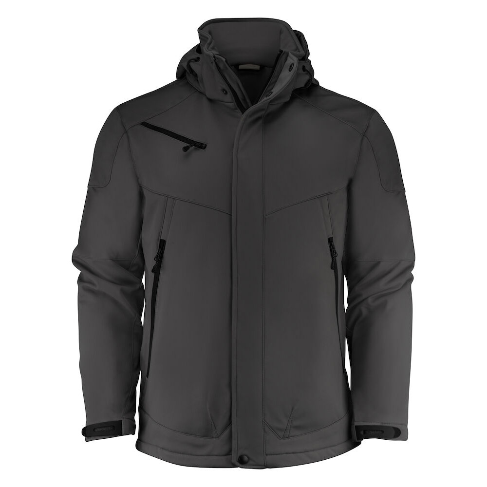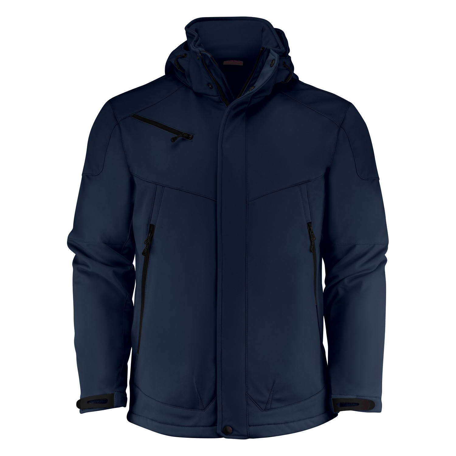 Vadderad soft shell-jacka med avtagbar huva. Dragsko i nederkant samt kardborrejustering i ärmavslut. Förböjda ärmar. Framfickor och bröstficka med dragkedja, 2 innerfickor med dragkedja samt en meshficka.