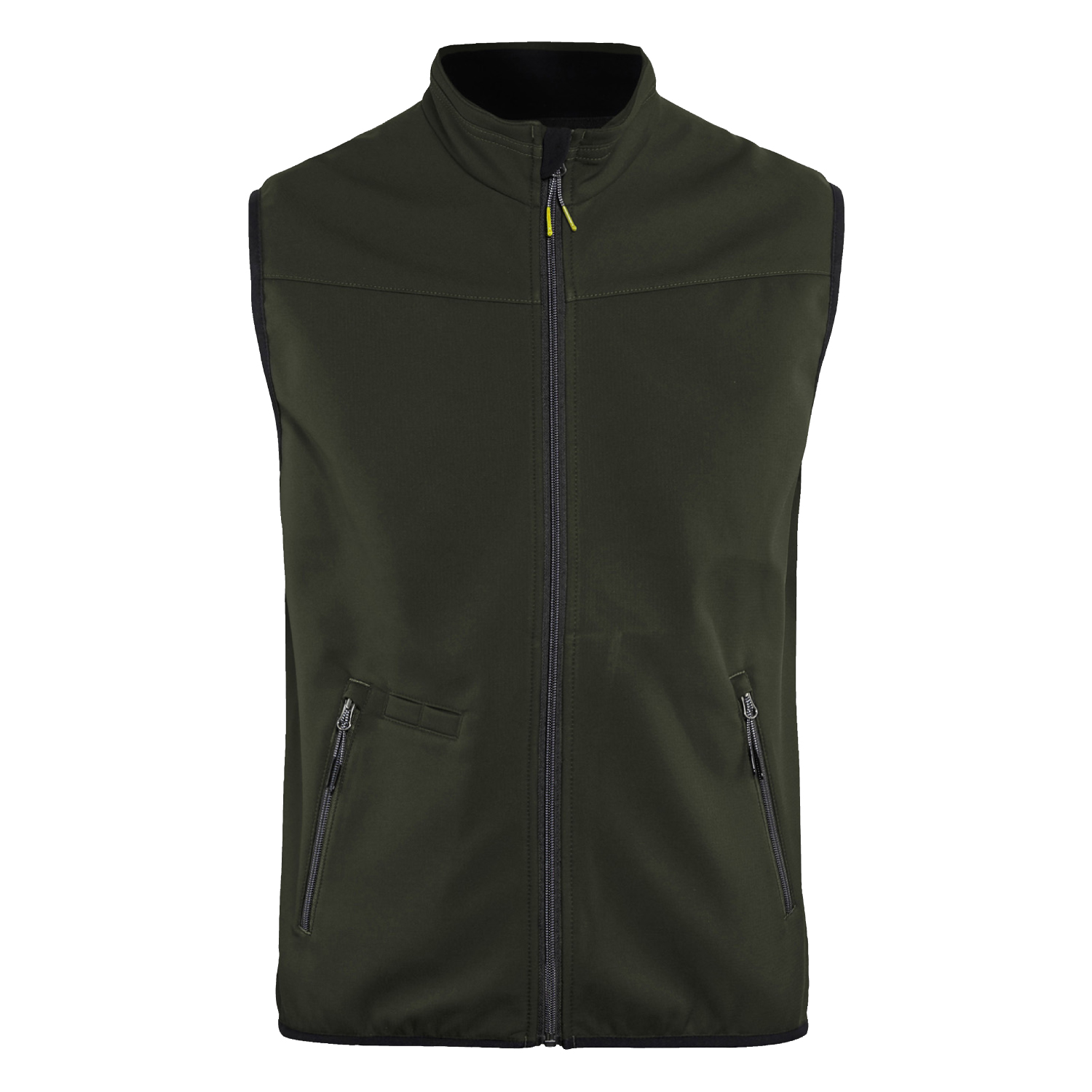 Tvåfärgad softshellväst från Blåkläder i vindavvisande material med god andningsförmåga. Stretchpanel i rygg ger ökad rörelseförmåga och ventilation. För optimal komfort har den förlängd rygg, fleecefodrad krage samt justerbar nederkant. Lämpar sig väl för arbete i sval inomhusmiljö.