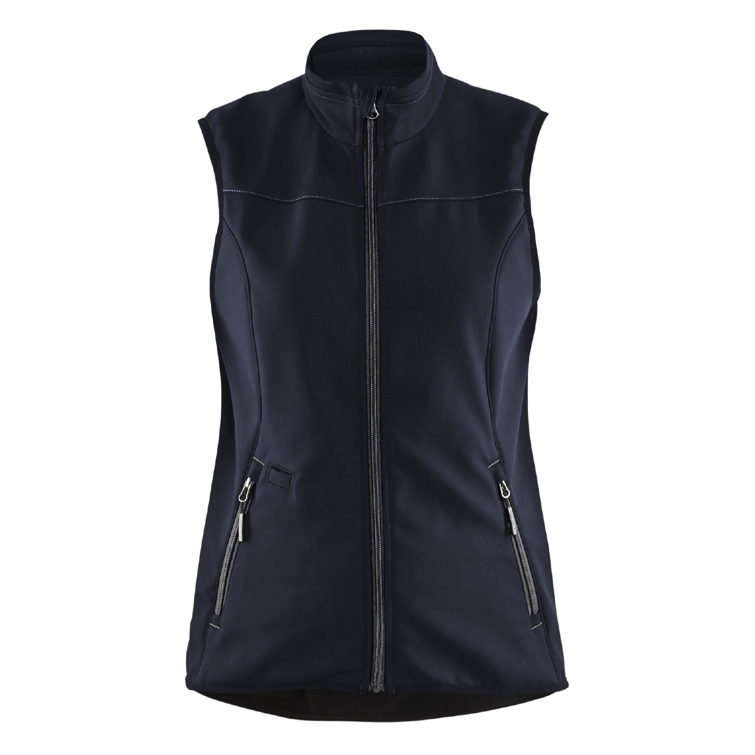 Softshellväst från Blåkläder i dammodell som är ett idealiskt överdragsplagg när du behöver hålla dig varm men ändå vill kunna röra dig obehindrat. Stretchpanelerna i ryggen ger bra ventilation, komfort och smidighet. Tyget är vindavvisande och fleecefodret i kragen är mjukt och skönt mot huden.