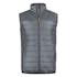 Softshell/ lättvikts väst. Oket, sidopaneler fram & bak av softshell (tyg 1). Bål, fram & bak av vadderat lättvikts material (tyg 2).