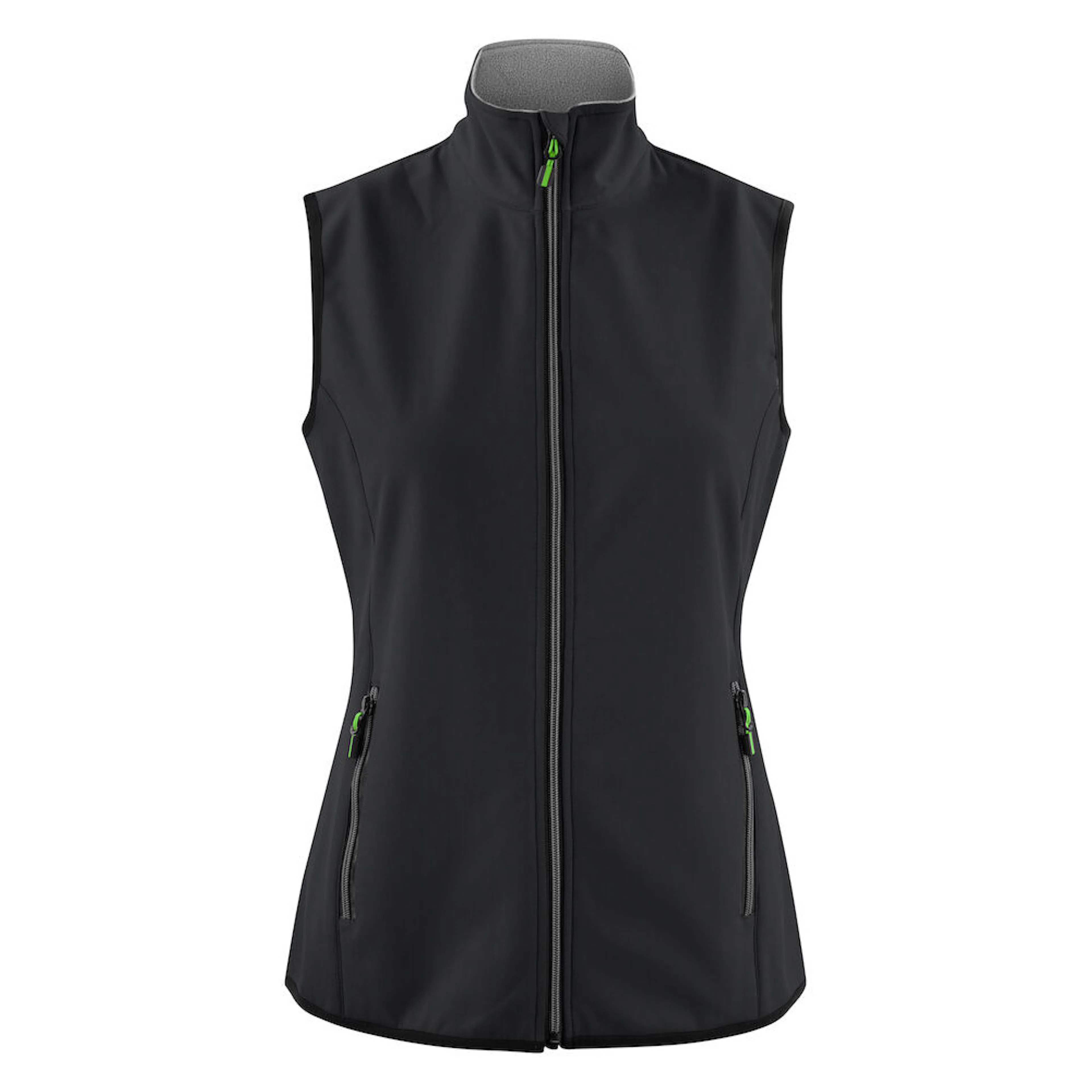 Softshell-väst baserad på Trial-jackan. Stretchband runt nederkant och i ärmöppning. Blixtlås och zip pullers i Printer Essentials-manér.