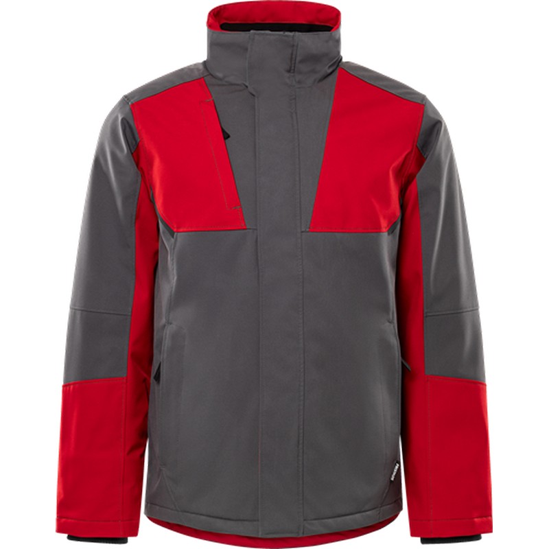 Softshell vinterjacka stretch 4931 GSW. Delvis återvunnet material / Vindtät och vattenavvisande med andasfunktion / Material med 4-vägsstretch / Quiltfoder / Fleecefodrad krage / Dragkedja ända upp i kragen under frontslå med tryckknappar / Bröstficka med dold dragkedja / 2 framfickor med dold dragkedja / Innerficka / Förböjda ärmar / Invändig ribbmudd / Dragsko i nederkant / Förlängd rygg / Mörkgrå reflexdetaljer / Dragkedja i foder för transfer / Vattenpelare > 3.000 mm / Godkänd enligt EN 342 / OEKO-TEX®-certifierad.