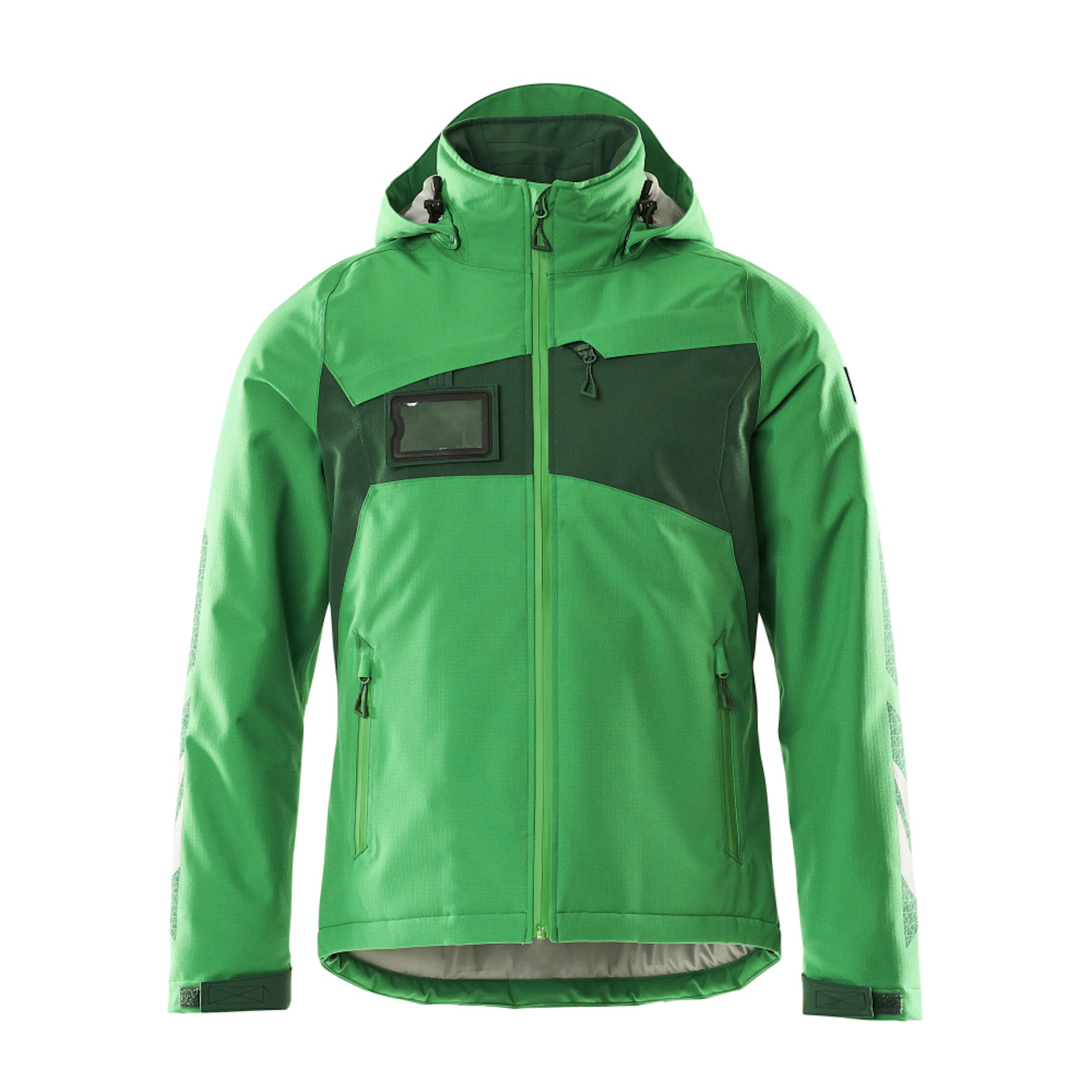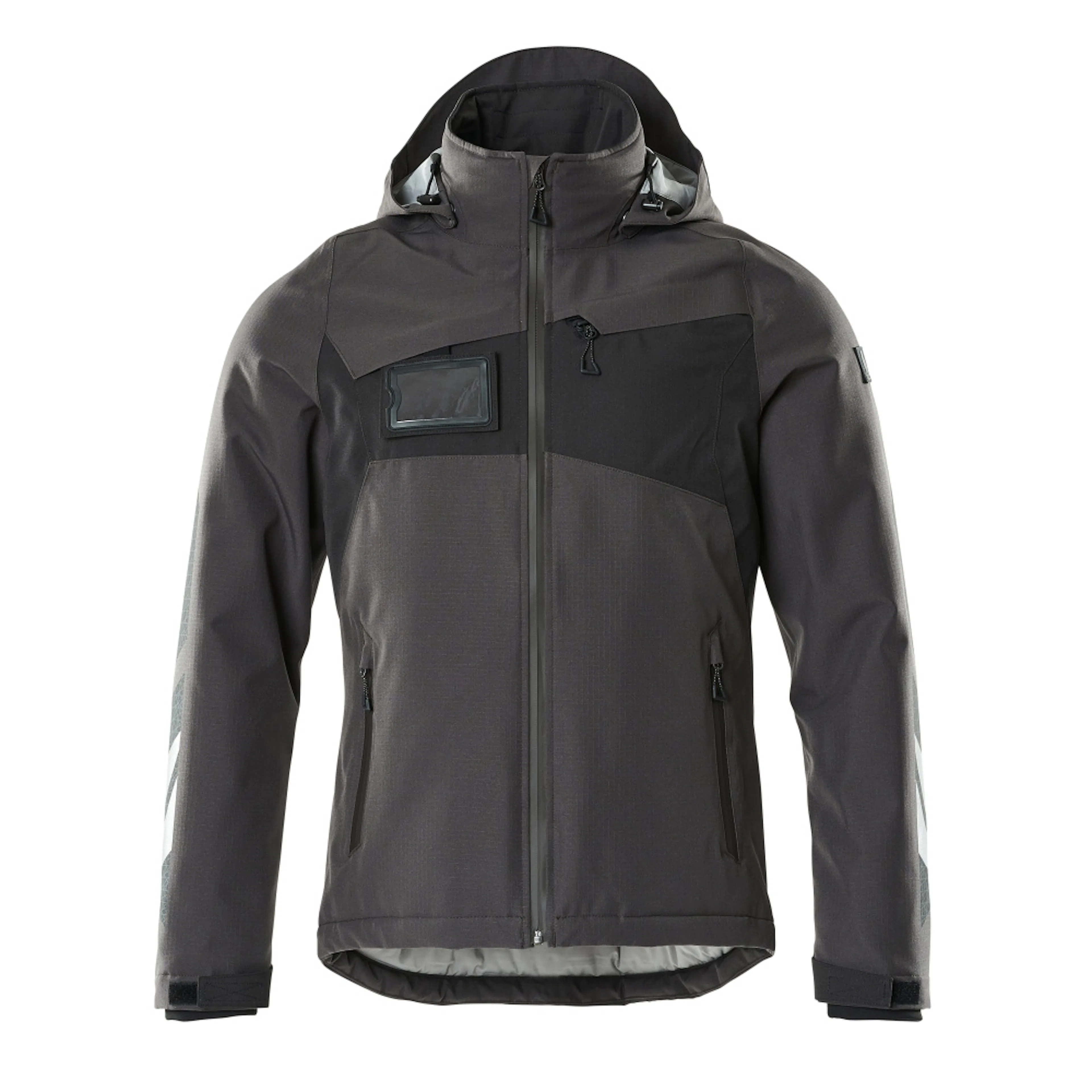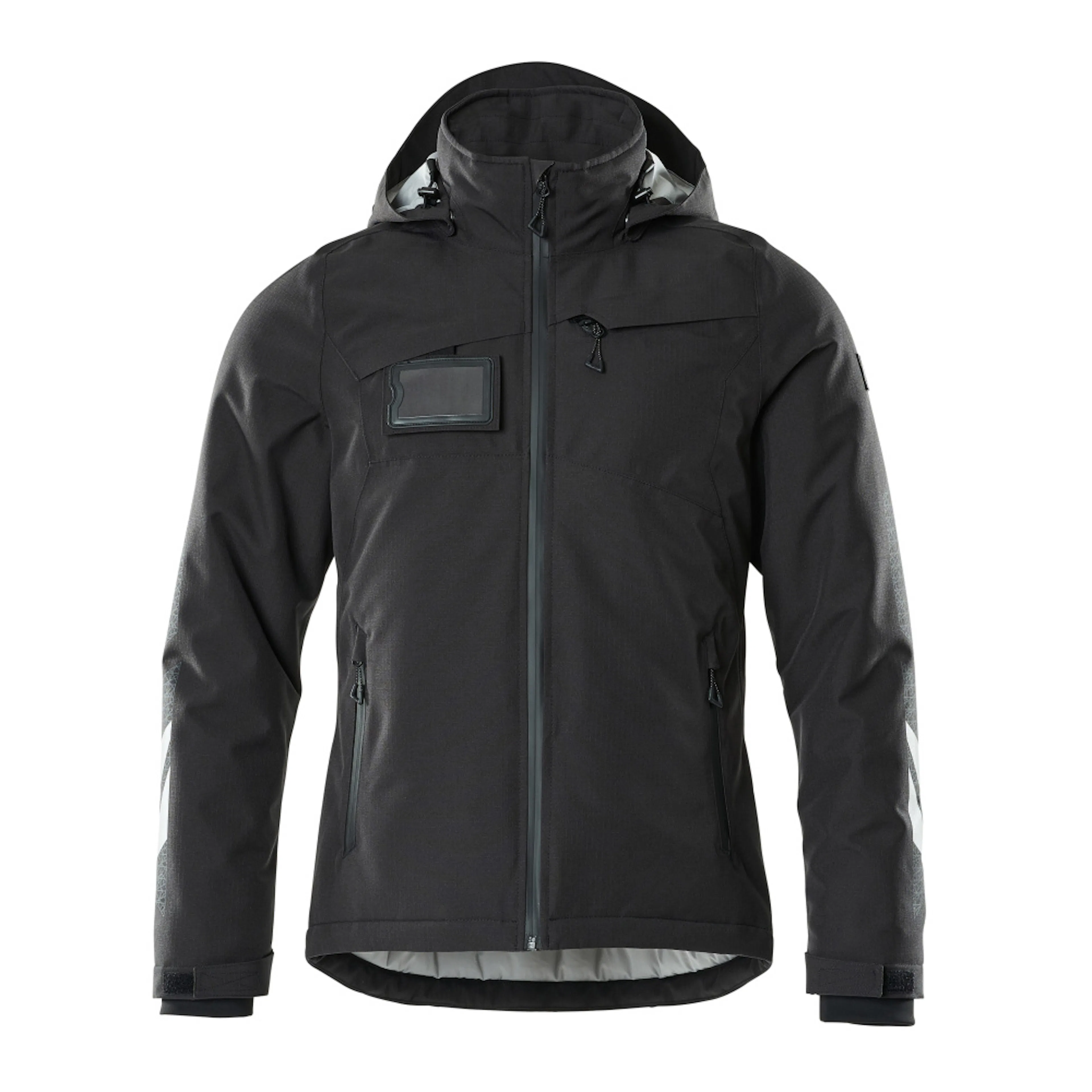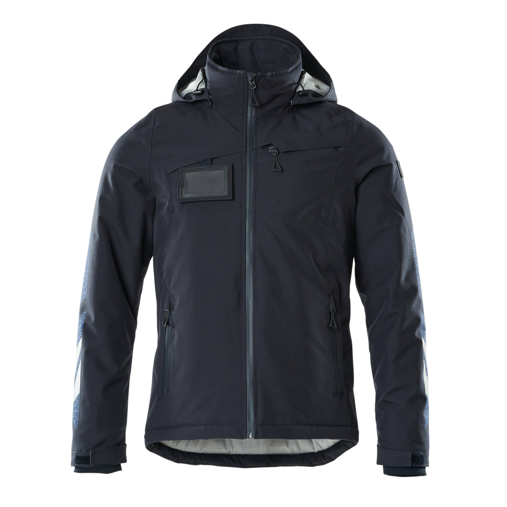Andas, vind- och vattentät. Sömmarna är tejpade. Med CLIMASCOT® Lightweight Insulation. Huvan är avtagbar, fodret har justerbart resårsnöre. Stängning med blixtlås och invändigt vindfång. Innerficka med blixtlås. ID-kortshållaren är avtagbar. Bröstficka med blixtlås. Framfickor med blixtlås. Resårkanten i nederkanten är reglerbar. Ärmar med CORDURA®-förstärkning. Ribbstickning vid handleden (dold i vindskyddet). Blixtlås nederst på ryggen, invändigt, för användning vid tryck/broderi. Med tryck och reflexer.