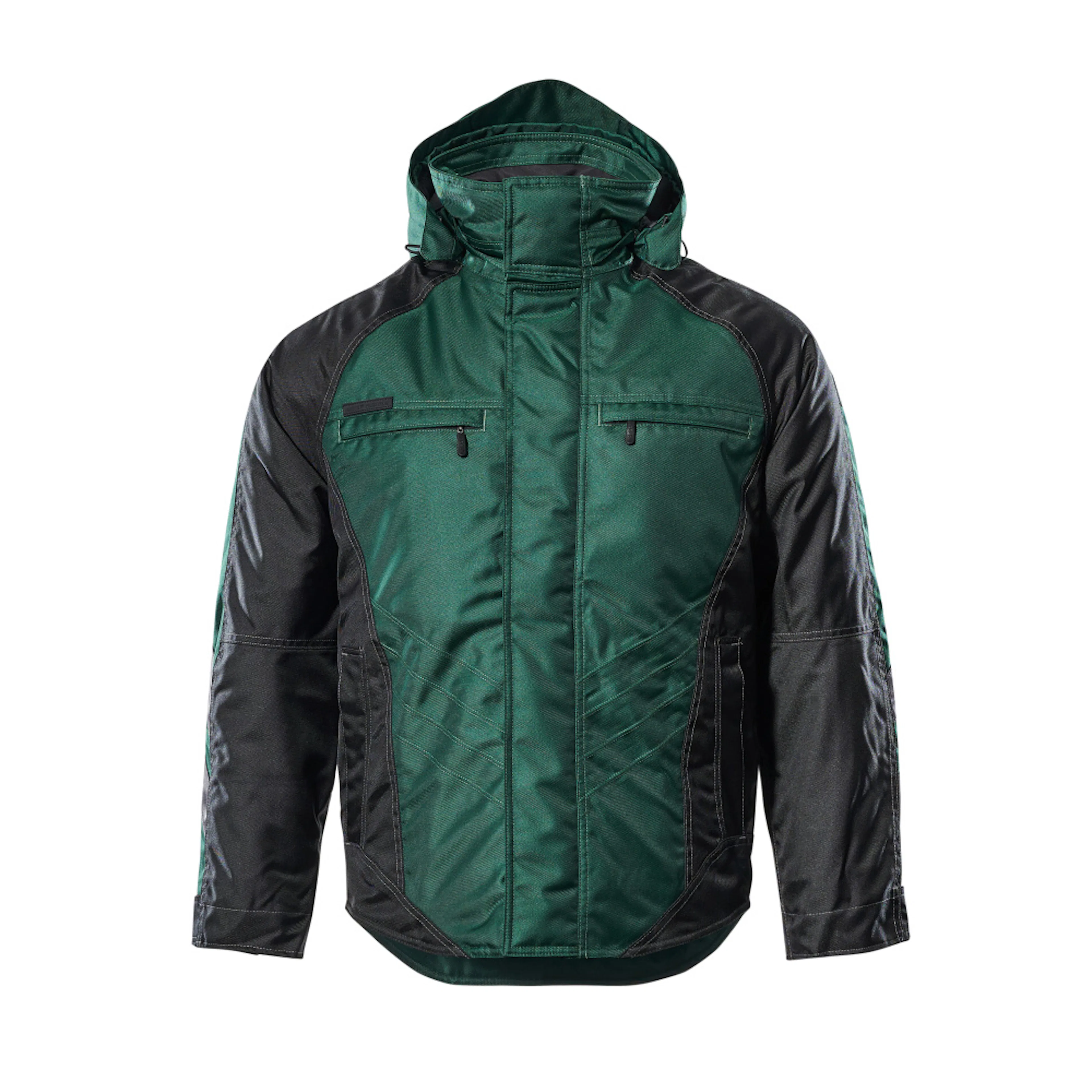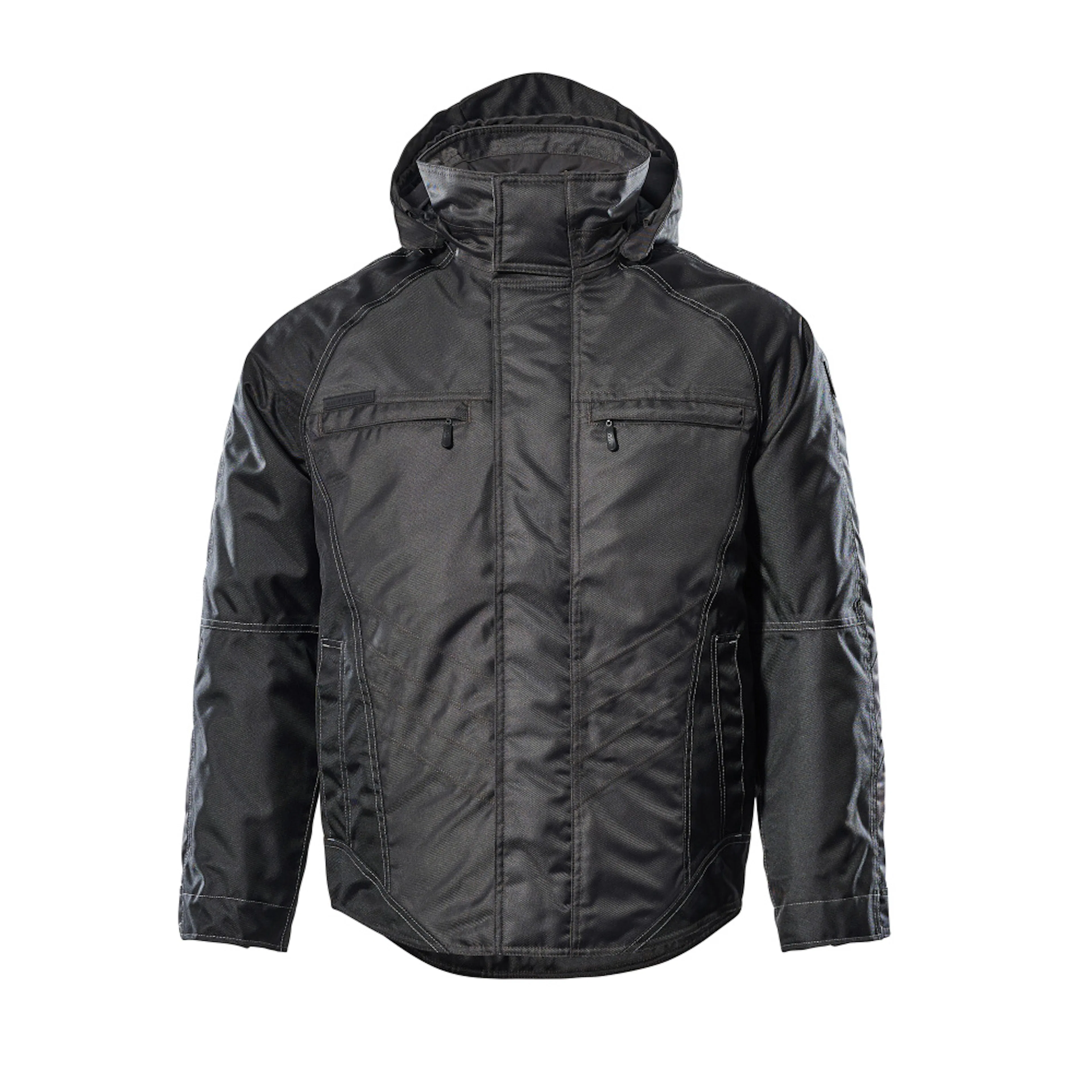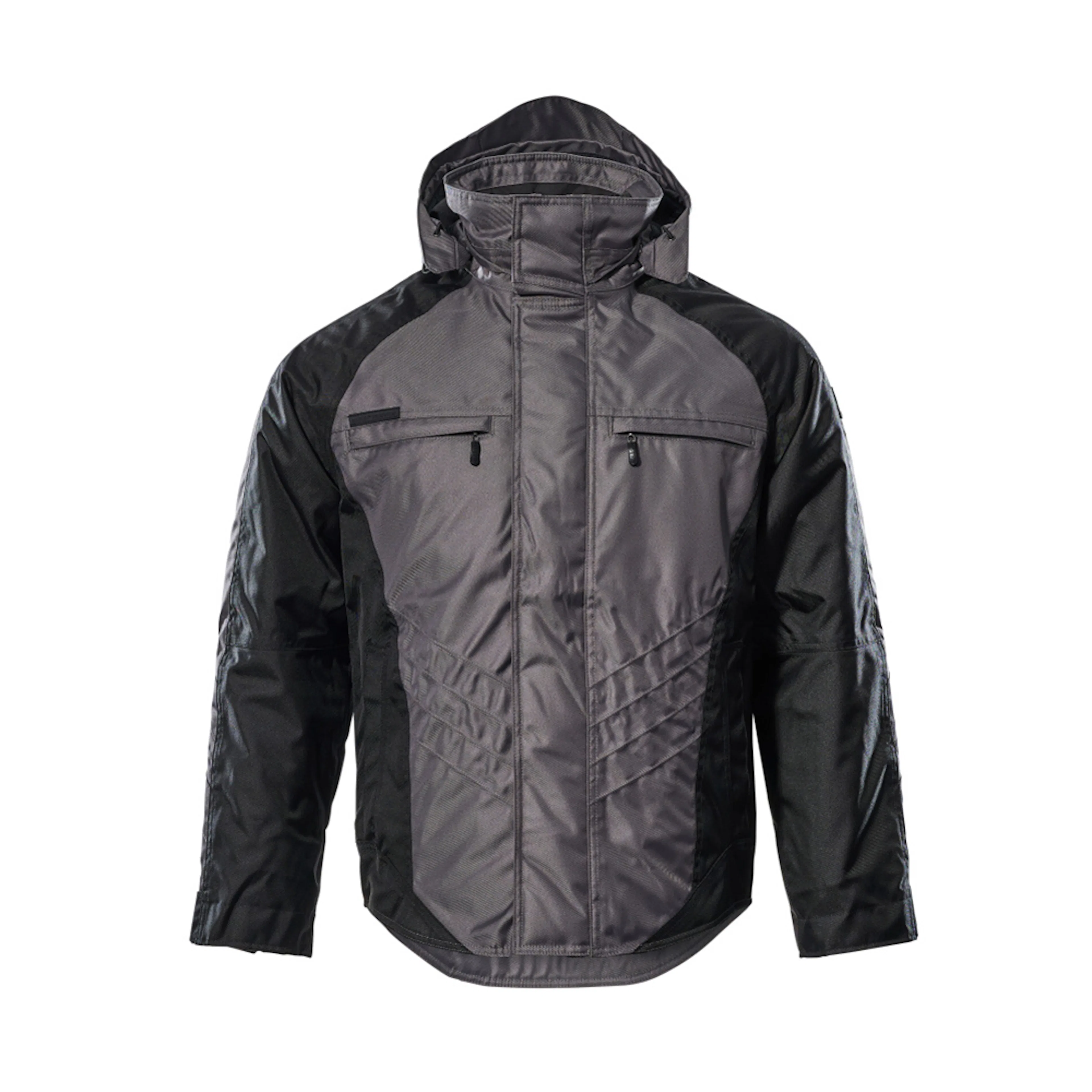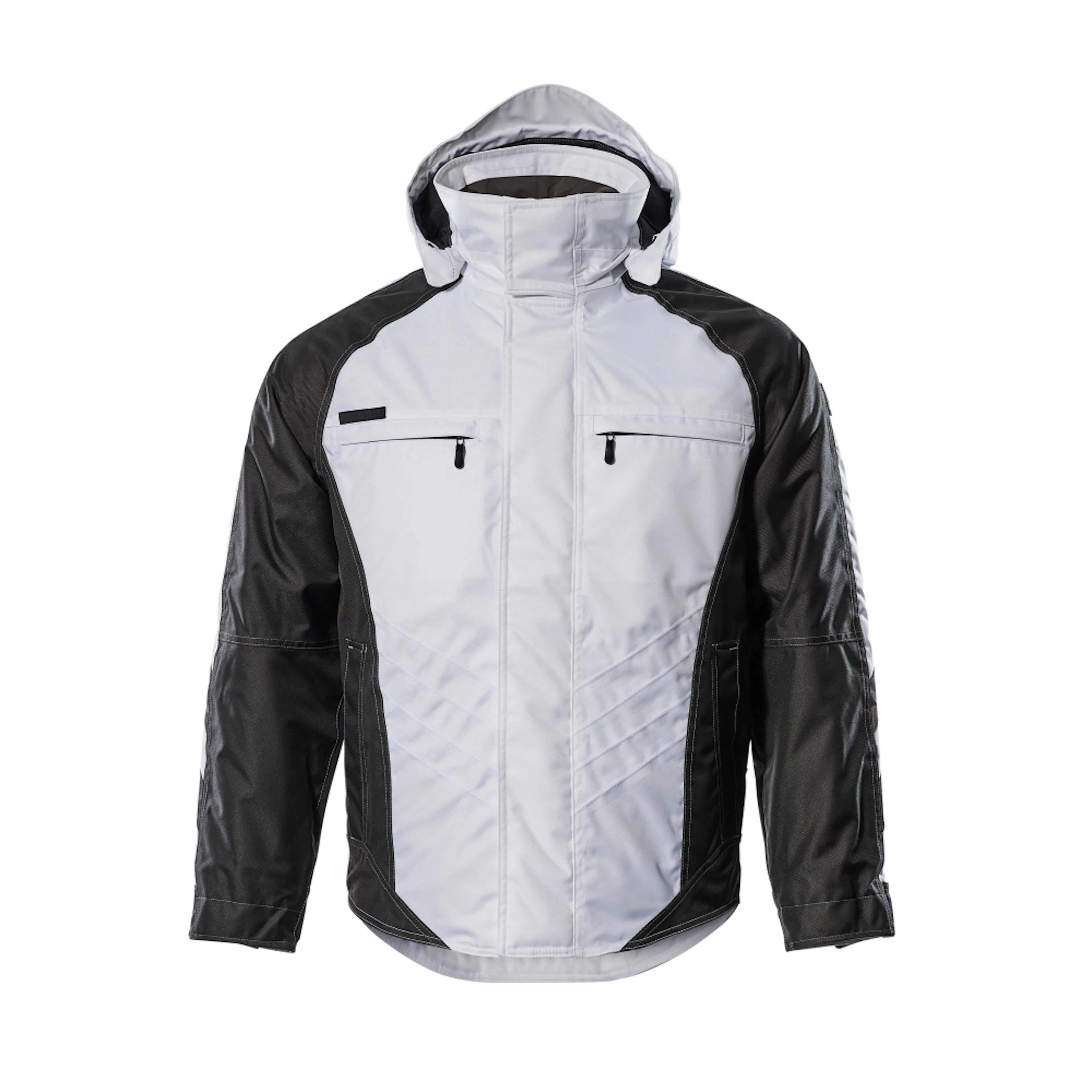 Tvåfärgat. Andas, vind- och vattentät. Sömmarna är tejpade. Huvan är avtagbar, fodret har justerbart resårsnöre. Foder av kviltad fleece. Stängning med blixtlås och vindskydd med tryckknappar. Blixtlåsficka under vindskydd. Bröstfickor med blixtlås. D-ring. Ergonomiskt utformade ärmar ger god rörelsefrihet. Fickor på framstycket. Innerficka med blixtlås. Ribbstickning vid handleden (dold i vindskyddet). Invändig snörning mitt på höften. Blixtlås nederst på ryggen, invändigt, för användning vid tryck/broderi. Reflexeffekter.