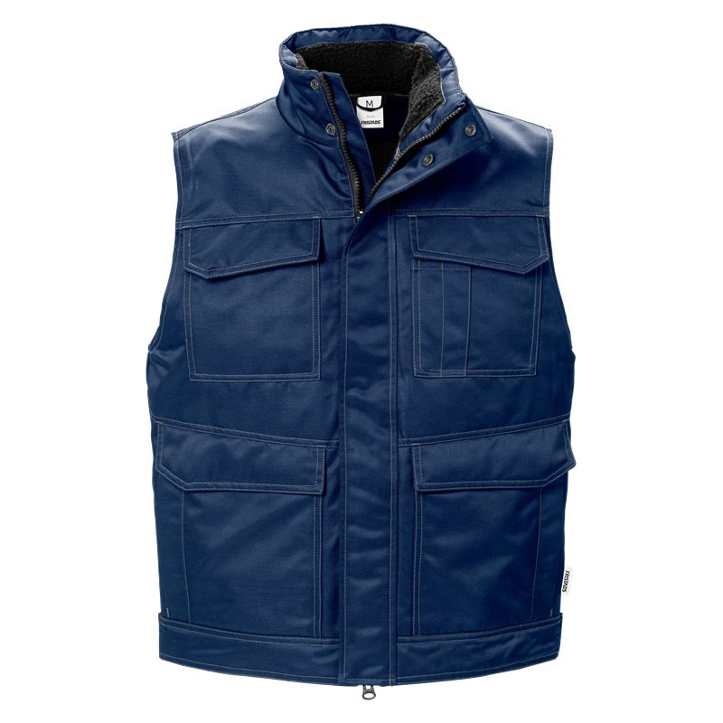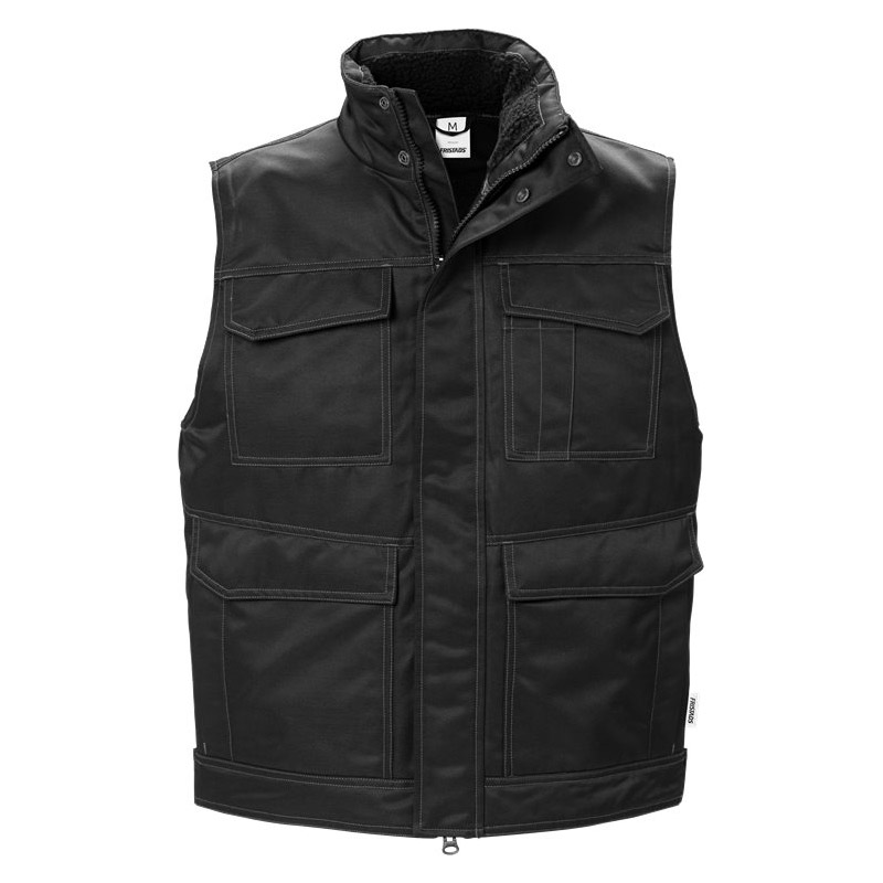 Slitstark pälsfiberfodrad väst i smuts-, olje- och vattenavvisande material.