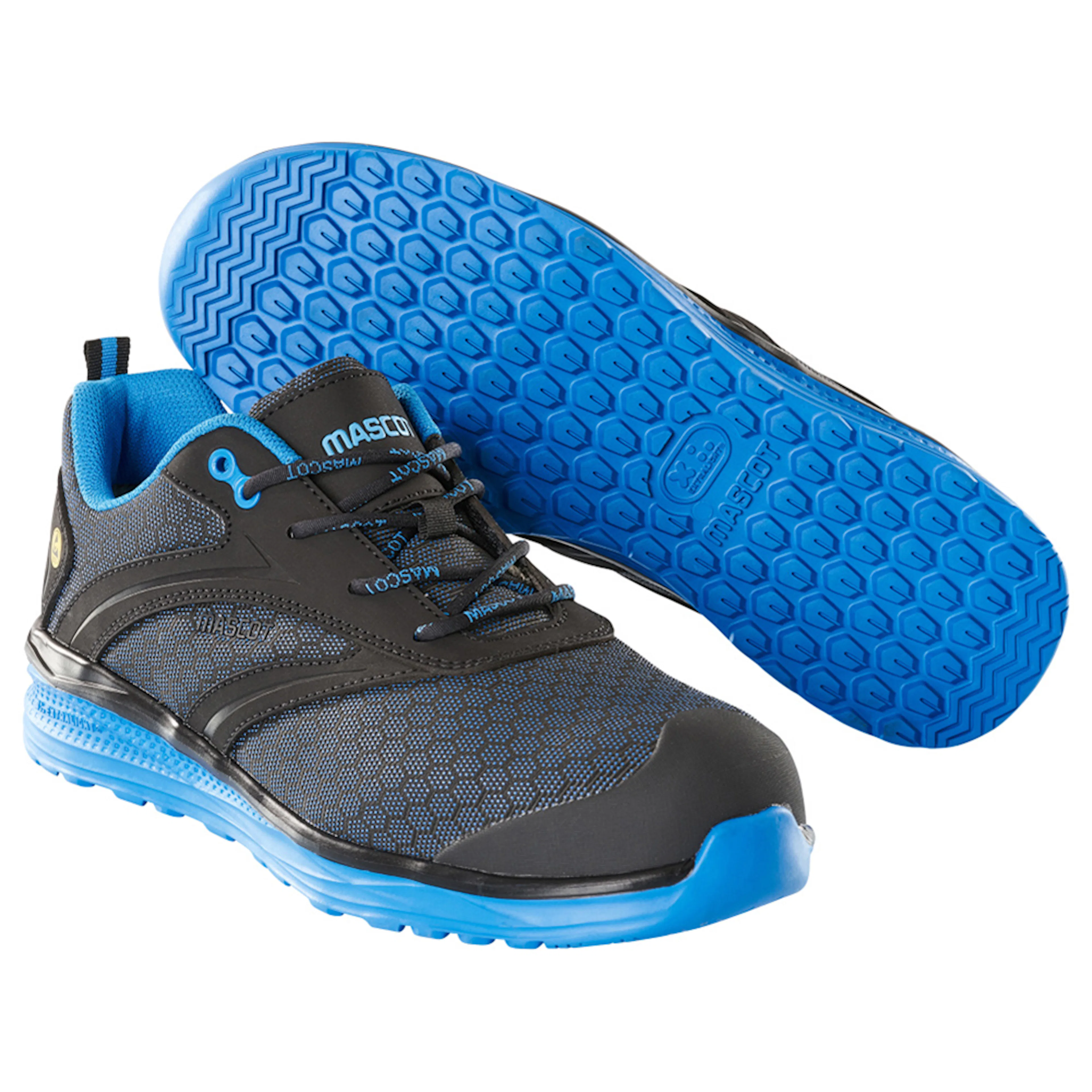 Dessa skor är helt metalfria. Ytmaterialet är andningsbart och släpper enkelt ut fukt och värme från fötterna, vilket ger en god komfort för fötterna. Skornas ytmaterial är tillverkat av 50 % återvunnen polyester. Tåhättan är tillverkad av kolfiber, som är ett mycket lätt och starkt material. Tåhättan är exceptionellt stark och motståndskraftig mot slag och tryck. Flexibelt och lätt spiktrampskydd av textil av MASCOLAYER® garanterar ett bra skydd och god komfort när du går. Slitsula av flexibel XL EXTRALIGHT® EVA ger skorna en låg vikt, hög komfort när du går och ökad stötdämpning. Sulan är olje- och bensinbeständig. ESD-godkända enligt EN IEC 61340-4-3: 2018 + EN 61340-5-1: 2016. Stabiliserad med MASCOTs patenterade multifunktionsskaft.