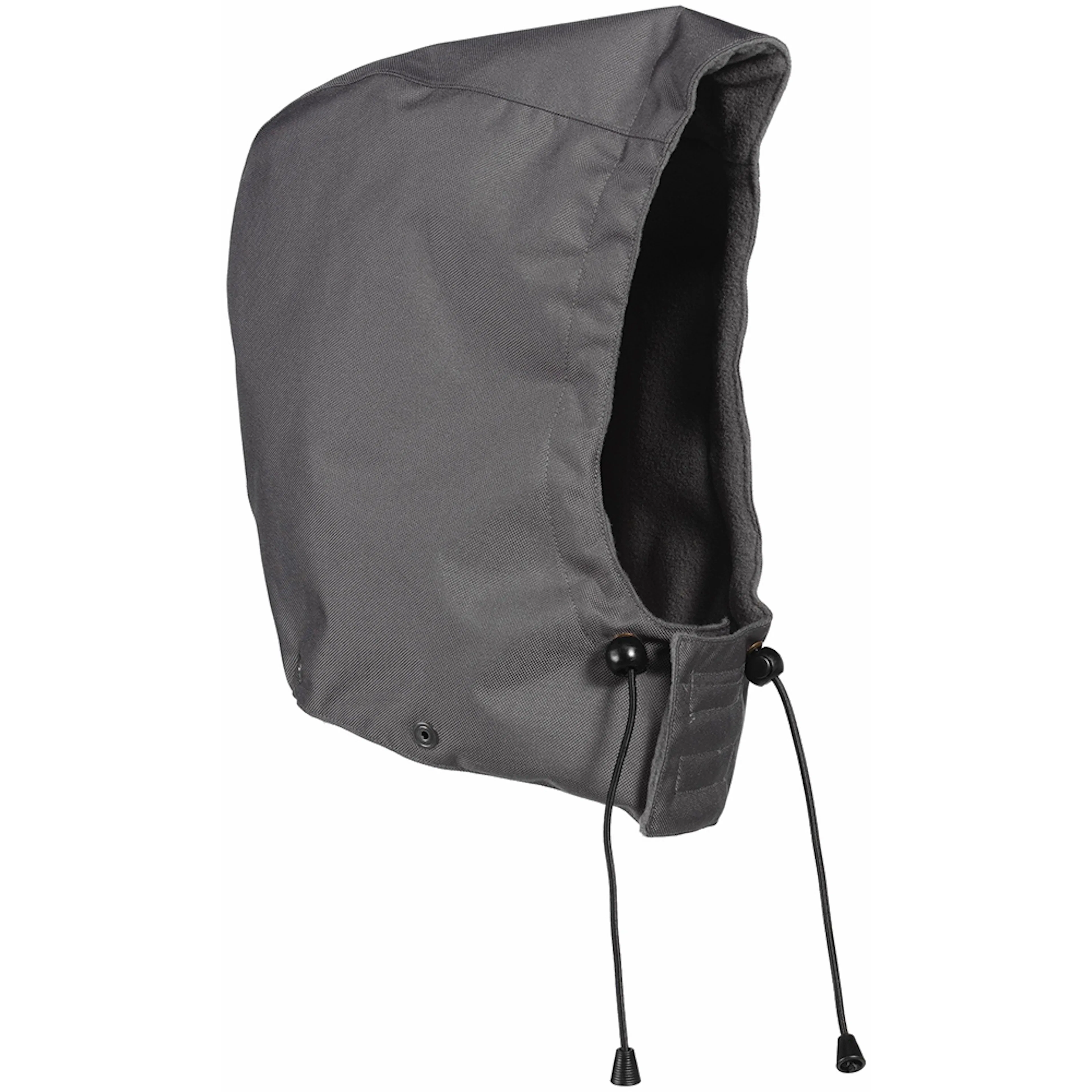 Andas, vind- och vattentät. Sömmarna är tejpade. Foder av fleece. Den elastiska snörningen i framkanten är justerbar. Kardborreband vid hakan. Sätts på med tryckknappar. Passar till MASCOT® Mataro och MASCOT® Tarragona.