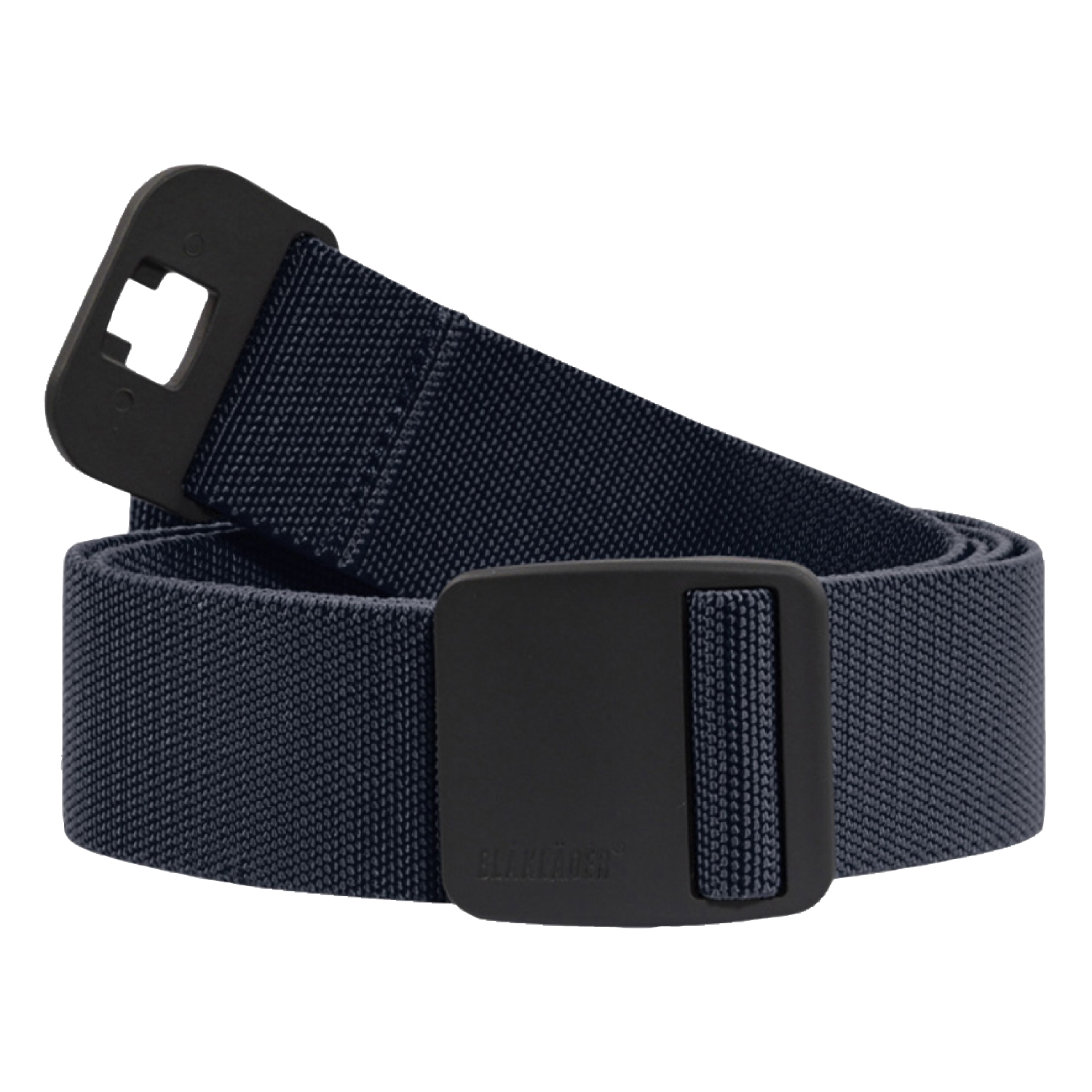Bälte från Blåkläder med gummibelagt plastspänne för att undvika repor. Stretch i remmen ger förhöjd komfort. Passar bra för fordonindustri eller där metalldetektorer används.
