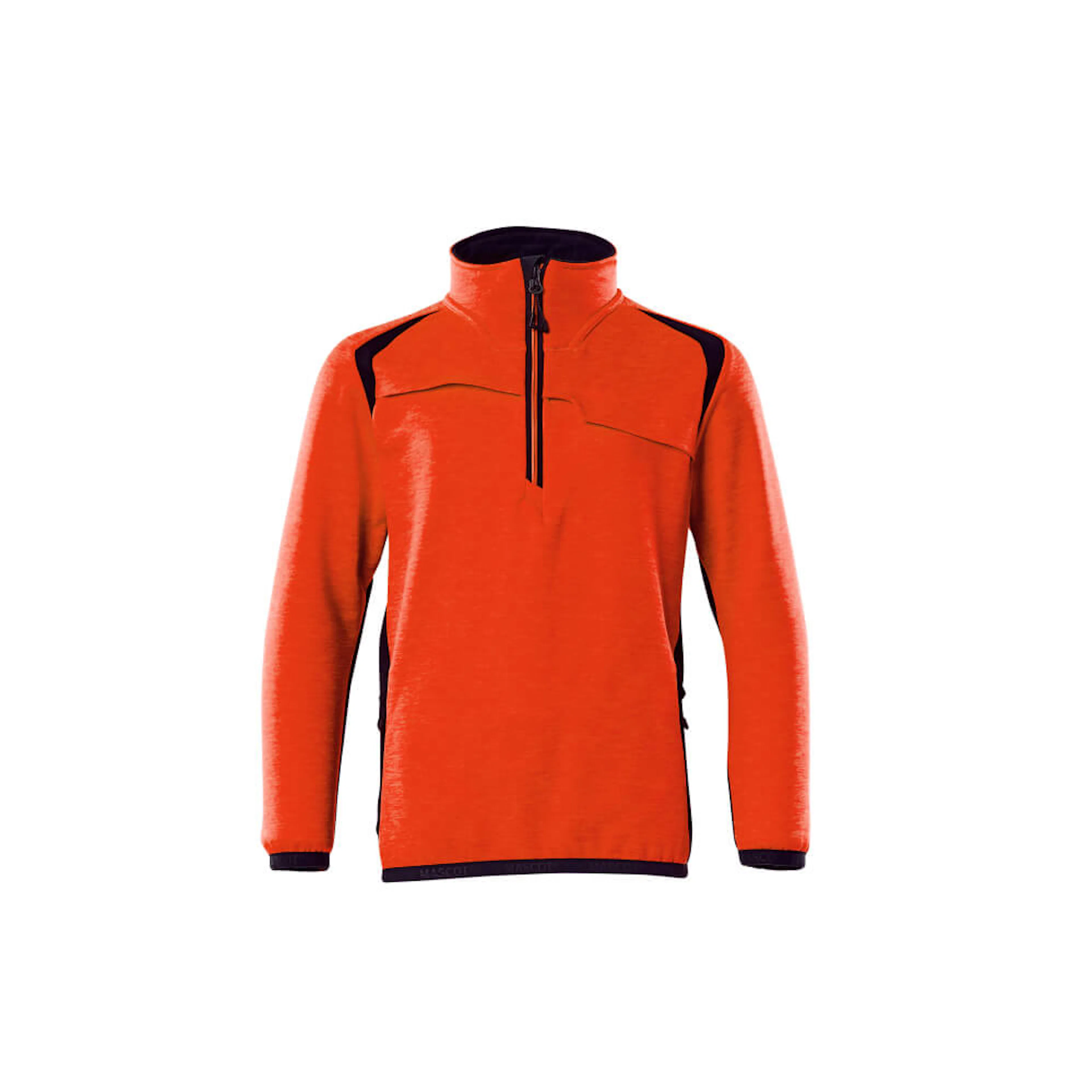 Tvåfärgat. Blixtlås i hals med vindskydd. Framfickor med blixtlås. Resår vid handleden och i nederkanten. Reflexeffekter.