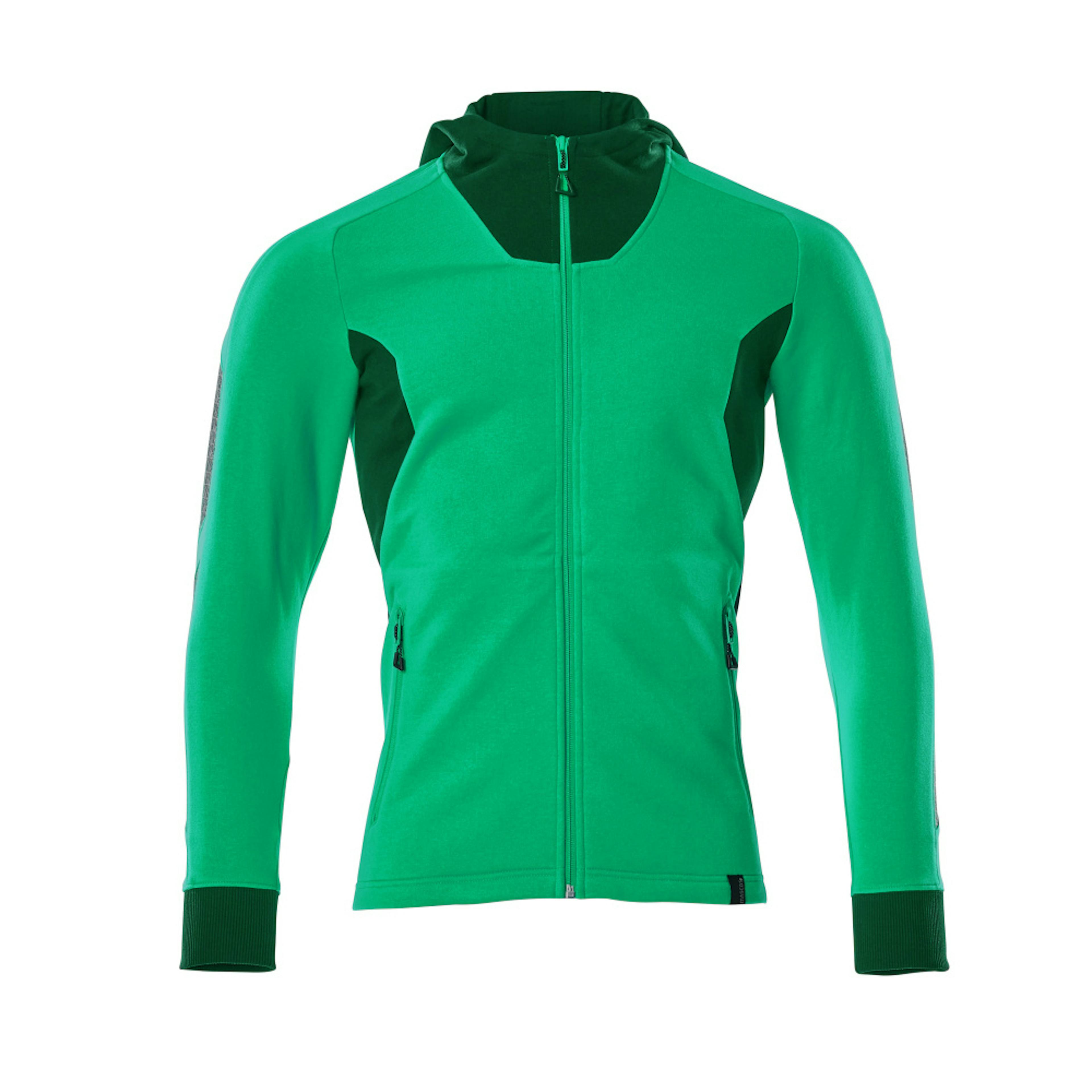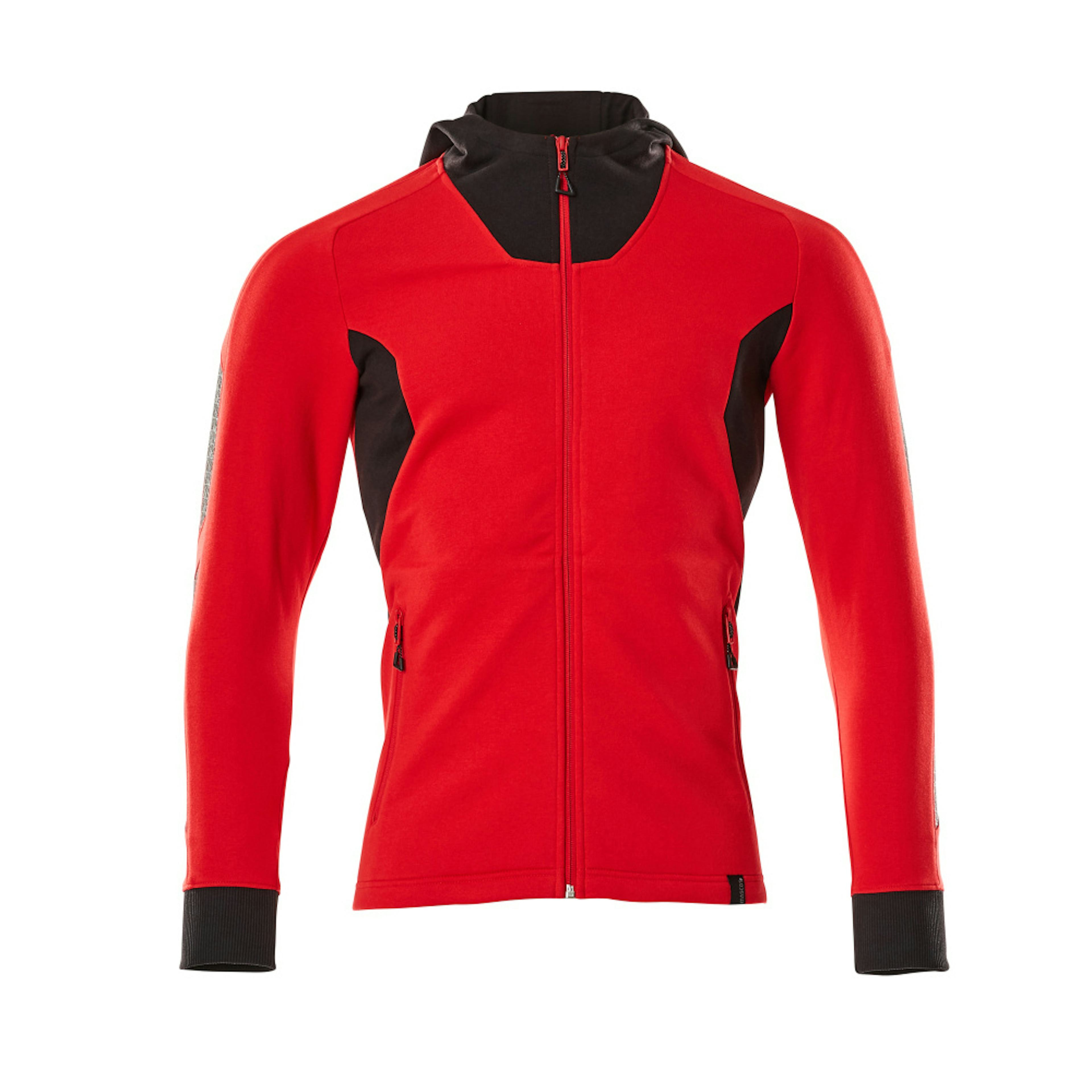 Modern passform. Kraftig kvalitet. Borstad insida. Hel blixtlås. Framfickor med blixtlås. Ribbstickning vid handlederna. Nackband. Tryck på delar av plagget.