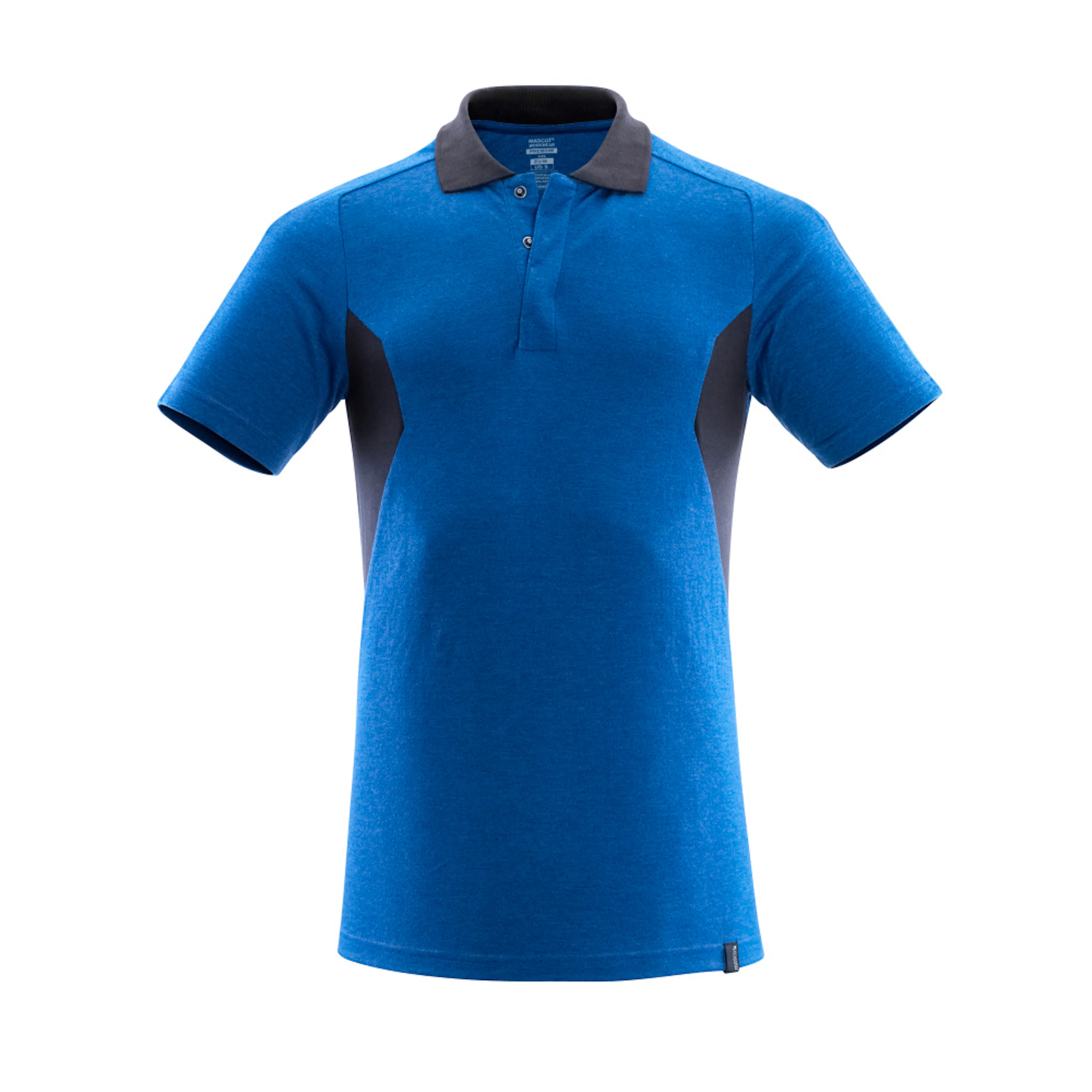 Modern, mer kroppsnära passform med riktigt bra rörelsefrihet. Ribbstickad krage. Slå med knappar. Extra fodring över sömmen i nacken så att sömmen inte stör. Gott om plats för placering av företagslogotyp. Tyget tål industritvätt.