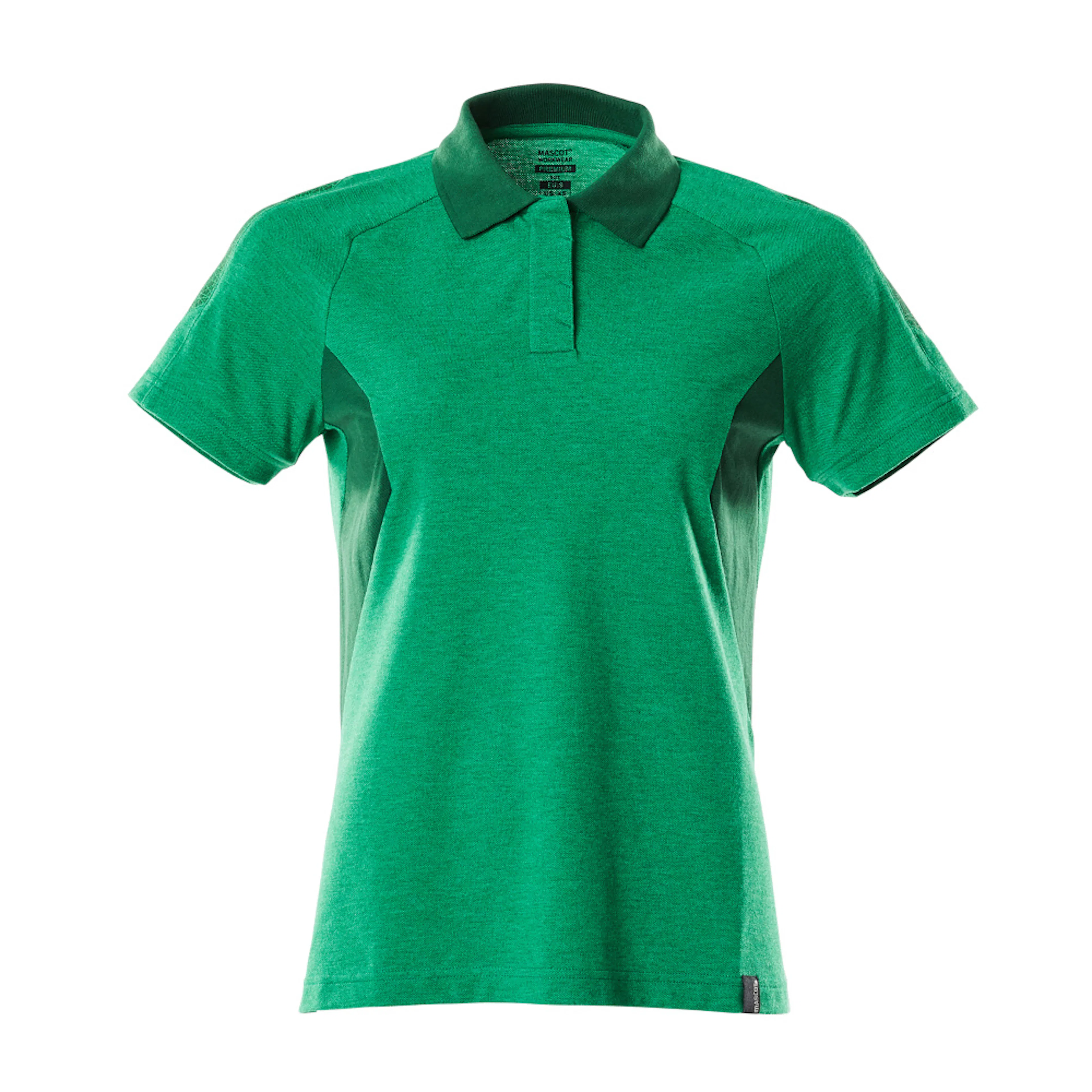 Speciellt designat och figursytt för kvinnor. Ribbstickad krage. Slå med knappar. Extra fodring över sömmen i nacken så att sömmen inte stör. Gott om plats för placering av företagslogotyp. Tyget tål industritvätt.