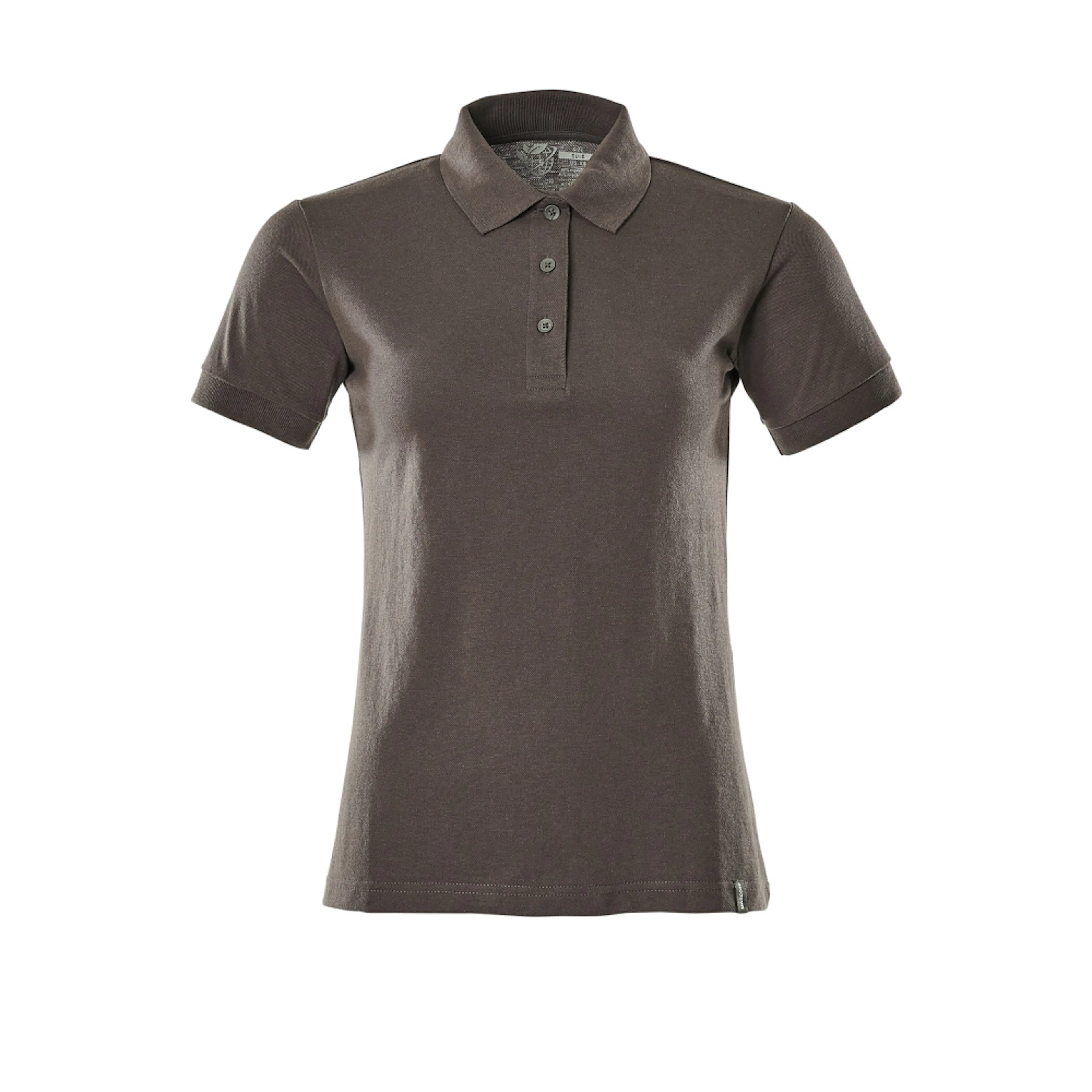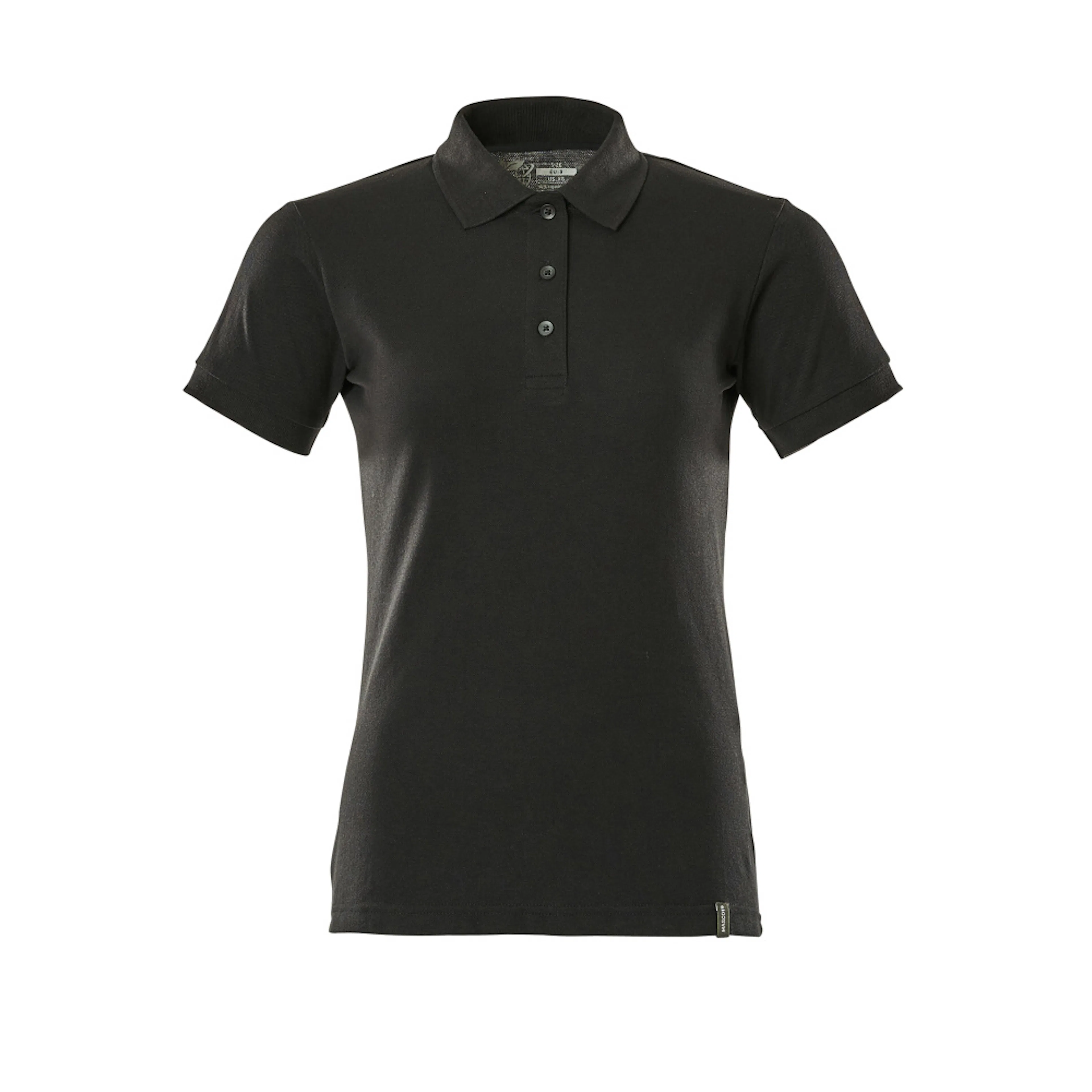Lady passform. Tillverkad av hållbara material. Ribbstickning i kragen. Slå med knappar. Nackband.