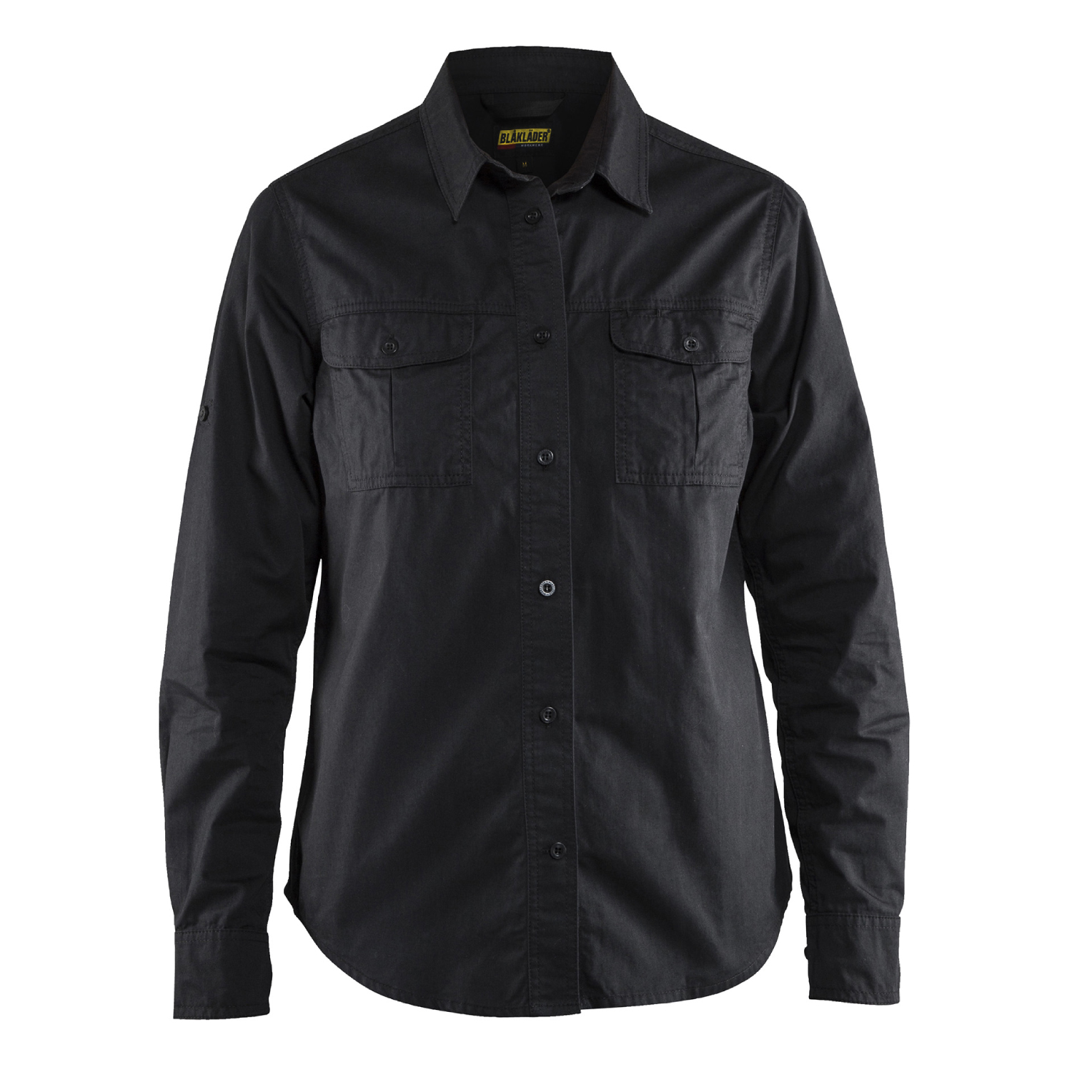 Långärmad twillskjorta i dammodell från Blåkläder. Skjortan har manschetter i ärmavslut och slejf med knapp för att hålla kvar uppvik.