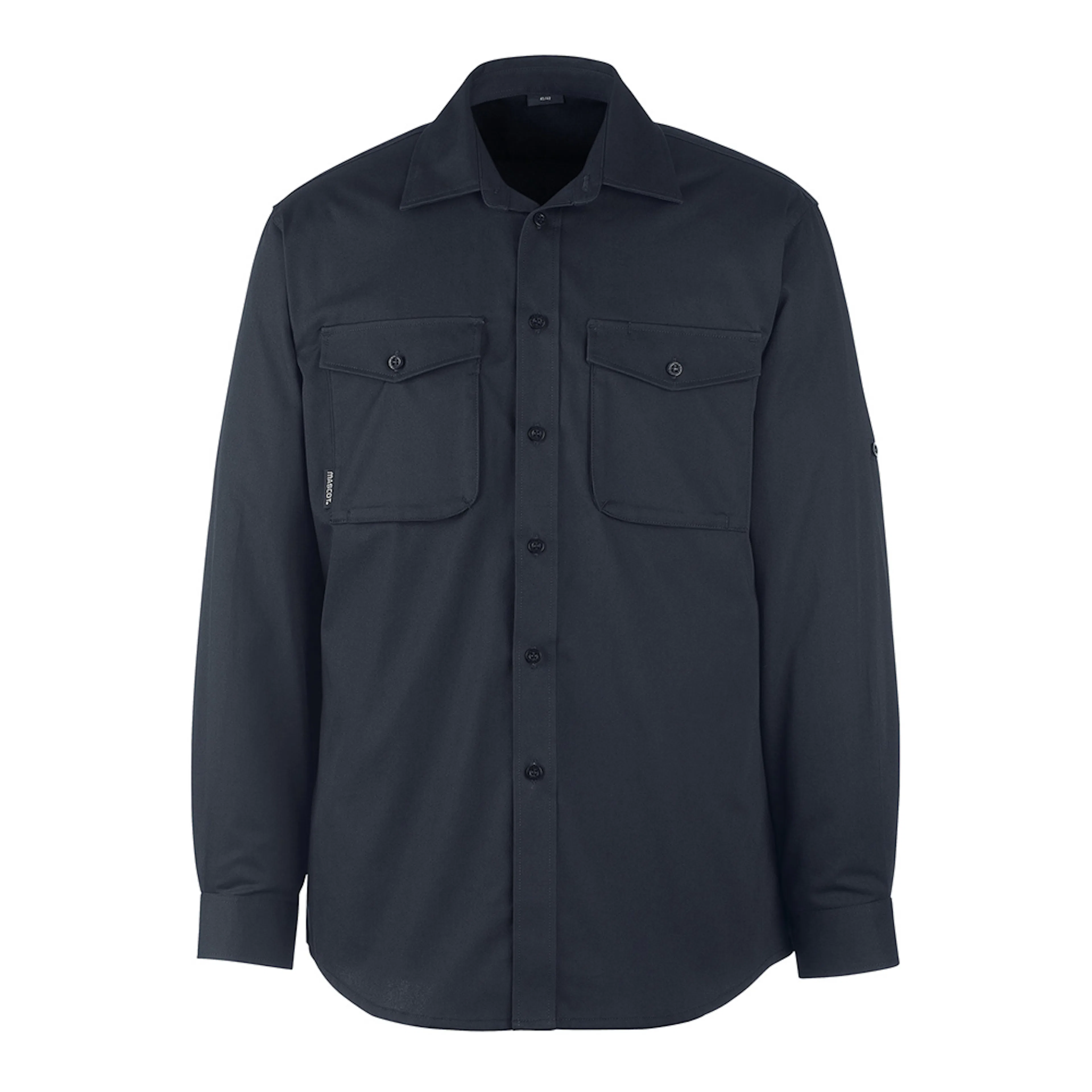 Modern, mer kroppsnära passform med riktigt bra rörelsefrihet. Slå med knappar. Krage med dold knapp som håller kragen på plats. Ärmar kan vikas upp och fästas med knapp. Förstärkta ärmslitsar. Justerbar vid handleden. Tyget tål industritvätt.