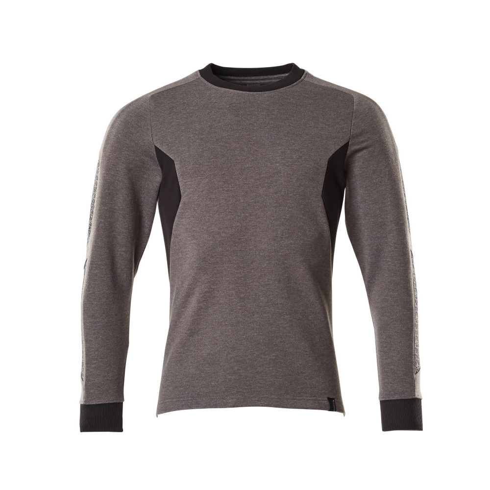 Modern passform. Kraftig kvalitet. Borstad insida. Ribbstickning i halsen och vid handlederna. Nackband. Tryck på delar av plagget.