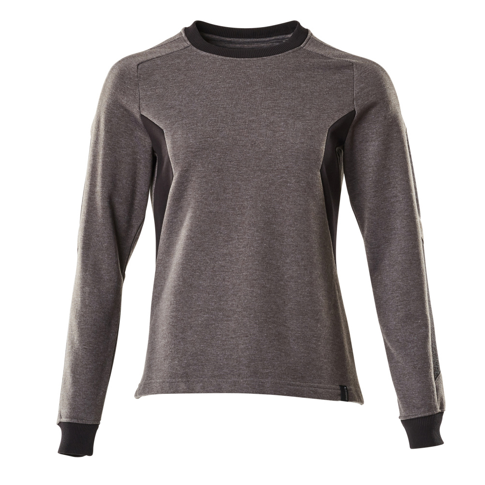 Lady passform. Kraftig kvalitet. Borstad insida. Ribbstickning i halsen och vid handlederna. Nackband. Tryck på delar av plagget.