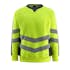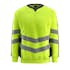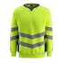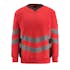 Fluorescerande med sneda tvärgående reflexer. Tvåfärgat. Modern passform. Behaglig bomullsinsida och slitstark polyester på utsidan. Reflexen är elastisk. Ribbstickad kant i hals, i nedre kant och vid handled. Sidoficka med vindskydd.