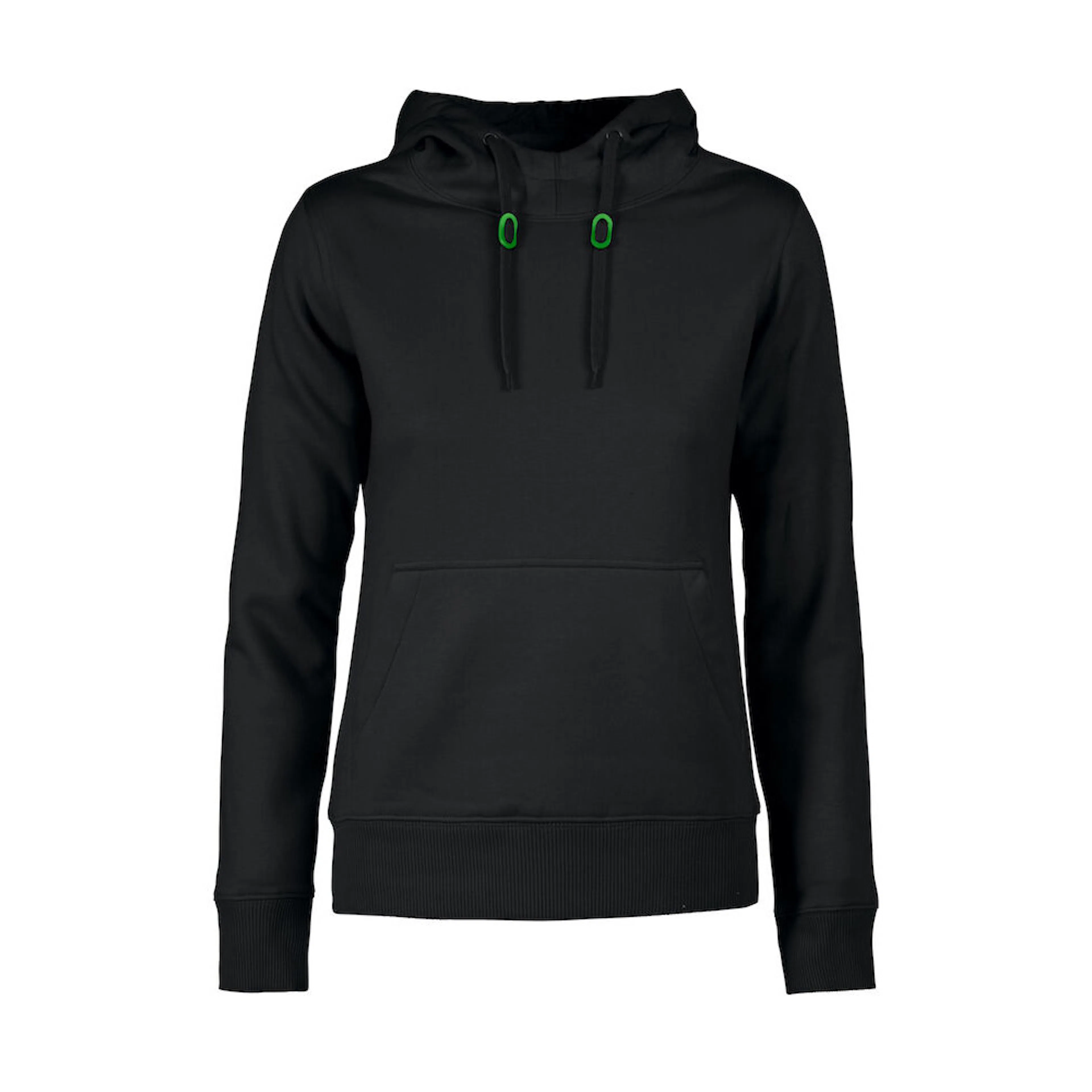 Huvtröja i dammodell. Halvmåne i nacken, 2x2 mudd i ärm och nederkant. Dragsko i kontrastfärg. Ersättningsdragskor i fler färger säljs separat.