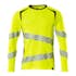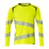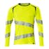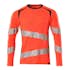 Fluorescerande med sneda tvärgående reflexer. Tvåfärgat. Modern passform. Behaglig bomullsinsida och slitstark polyester med stretch på utsidan. Kvadratiskt jacquardmönster. Reflexen är elastisk. Rund hals. Ribbstickning i halsen. Nackband.