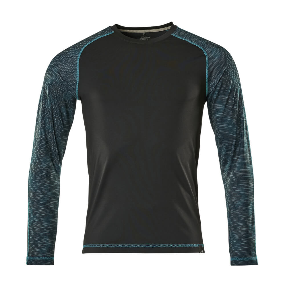 Antibakteriell och fukttransporterande. Torkar snabbt – viktigt för att undvika att kroppen kyls ned. Modern, mer kroppsnära passform med riktigt bra rörelsefrihet. Extra fodring över sömmen i nacken så att sömmen inte stör. Ribbstickning på hals.