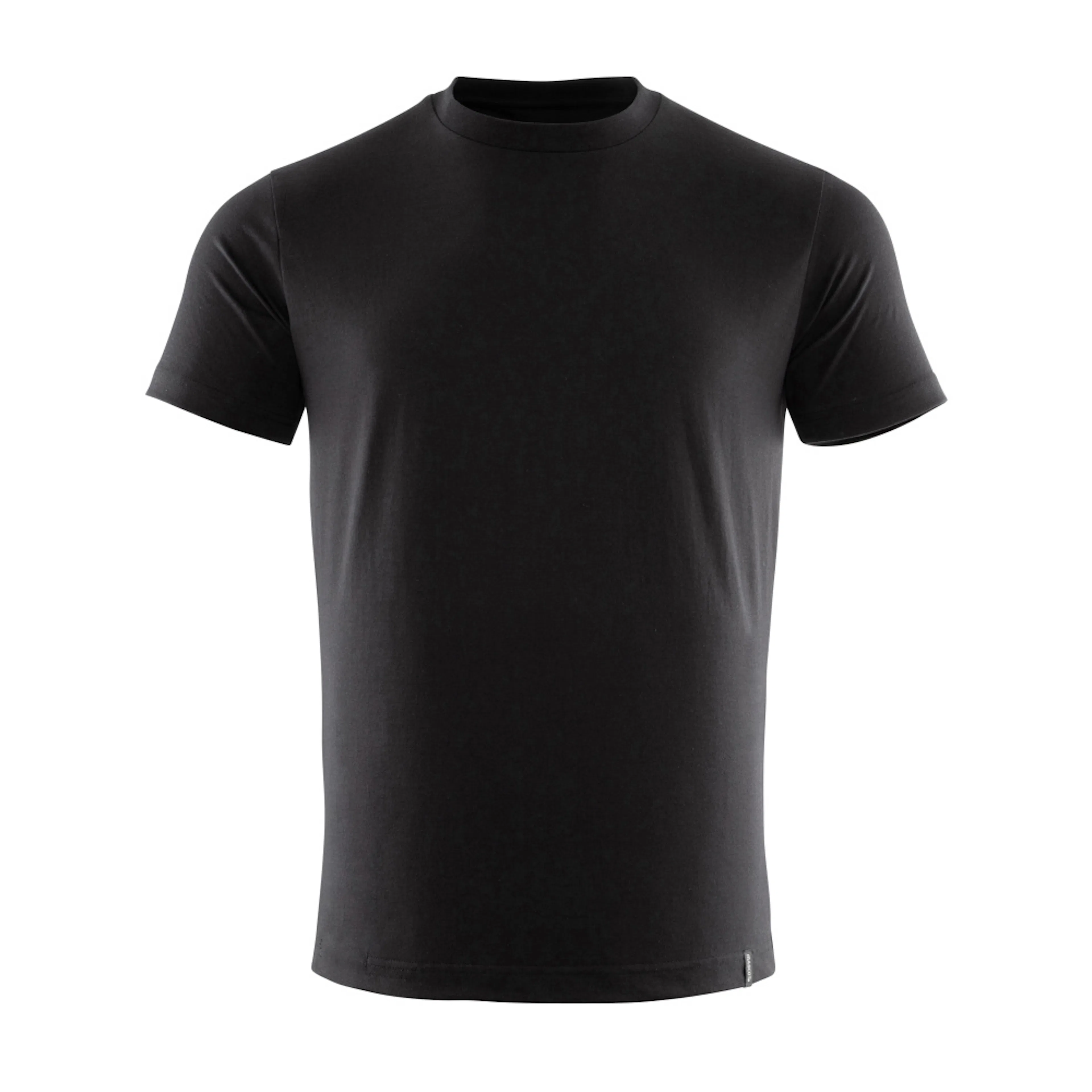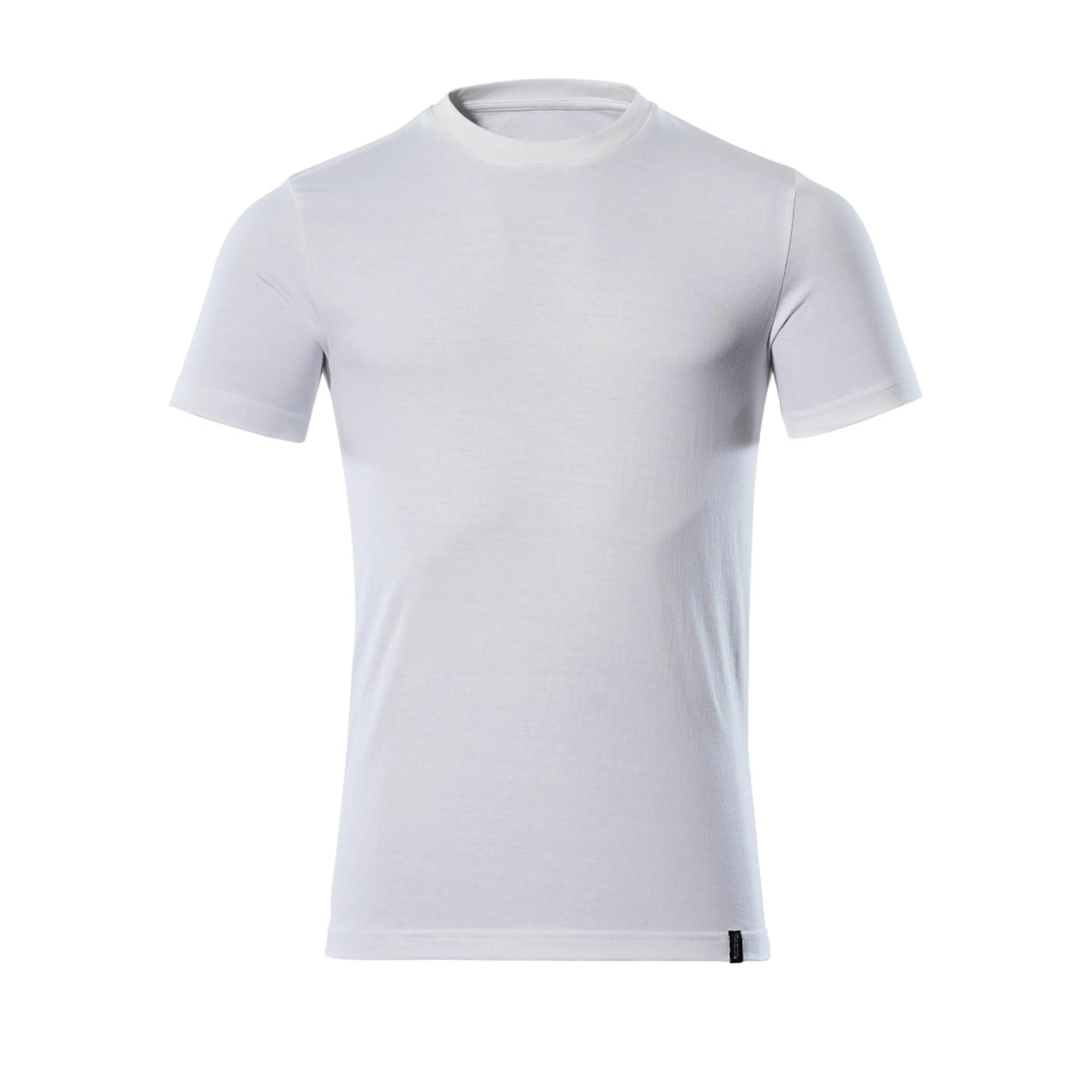 Modern passform. Kraftig kvalitet. Kammad bomull. Förkrympt. Rund hals. Ribbstickning i halsen. Nackband. Förberedd för insättning av namnlapp samt HF- och UHF-chip. Lämplig för industritvätt.
