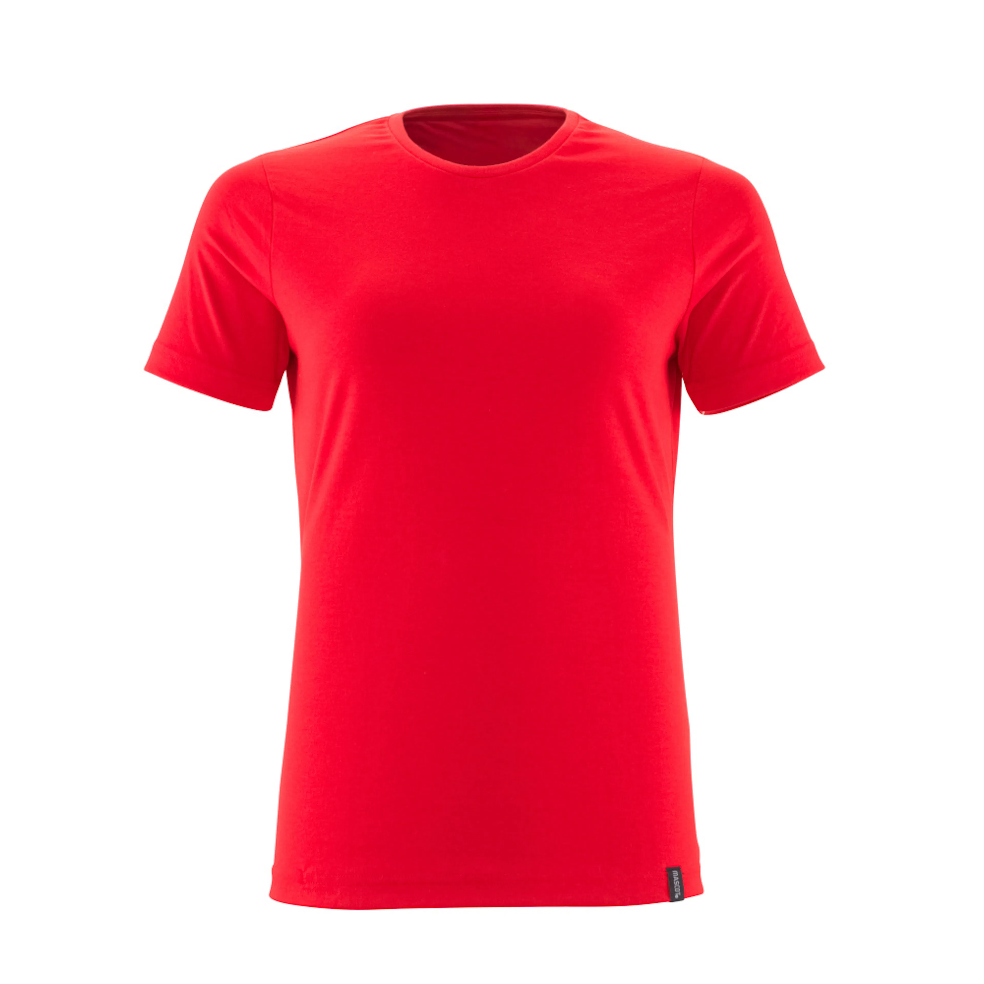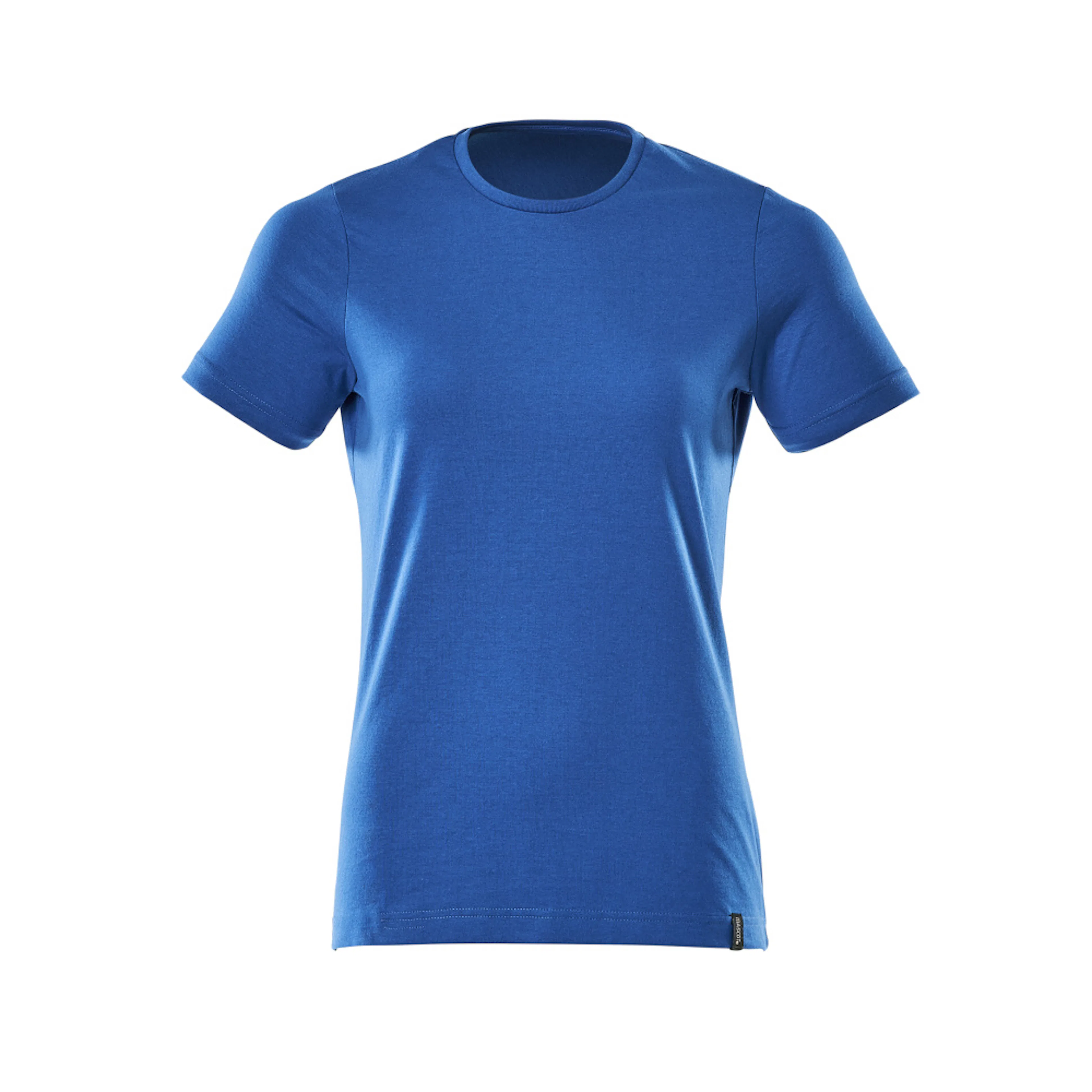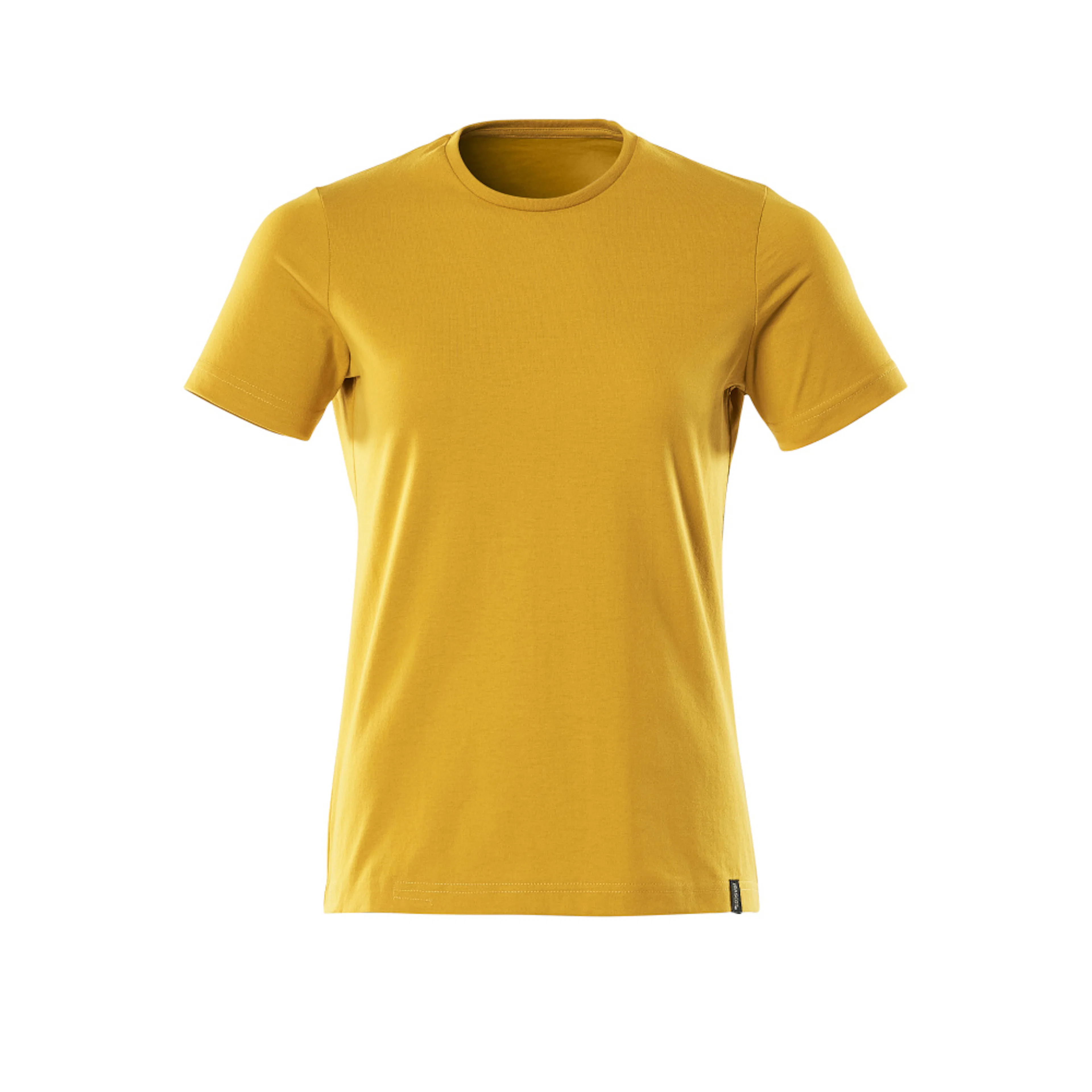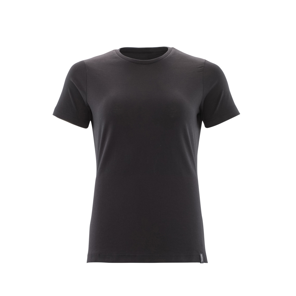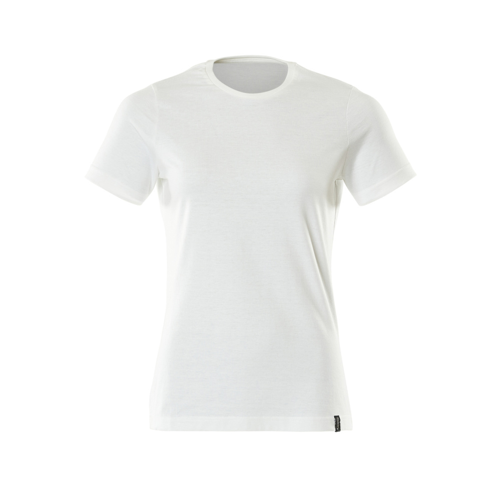 Lady passform. Kraftig kvalitet. Kammad bomull. Förkrympt. Rund hals. Ribbstickning i halsen. Nackband. Förberedd för insättning av namnlapp samt HF- och UHF-chip. Lämplig för industritvätt.