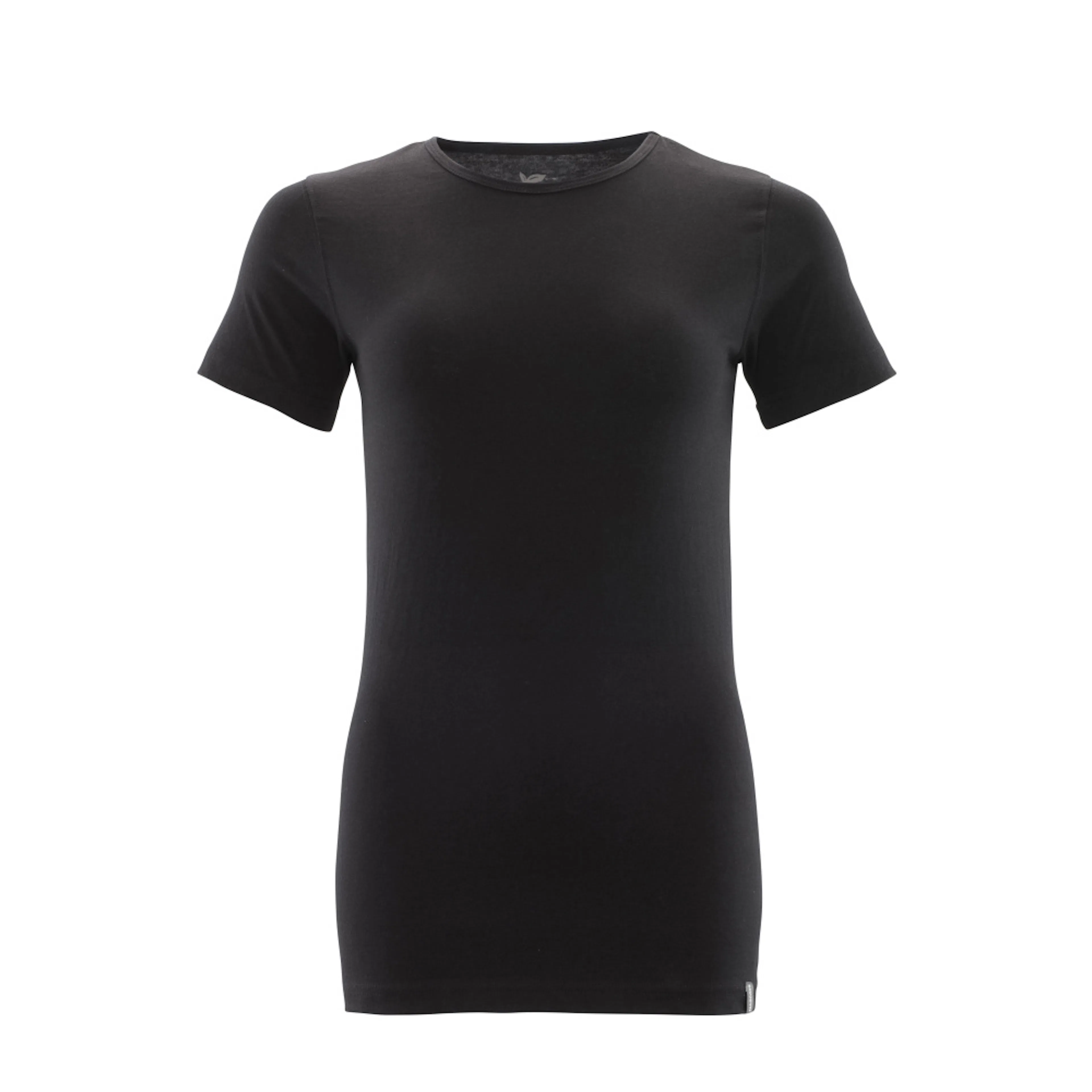 Lady passform. Tillverkad av hållbara material. Rund hals. Ribbstickning i halsen. Nackband.