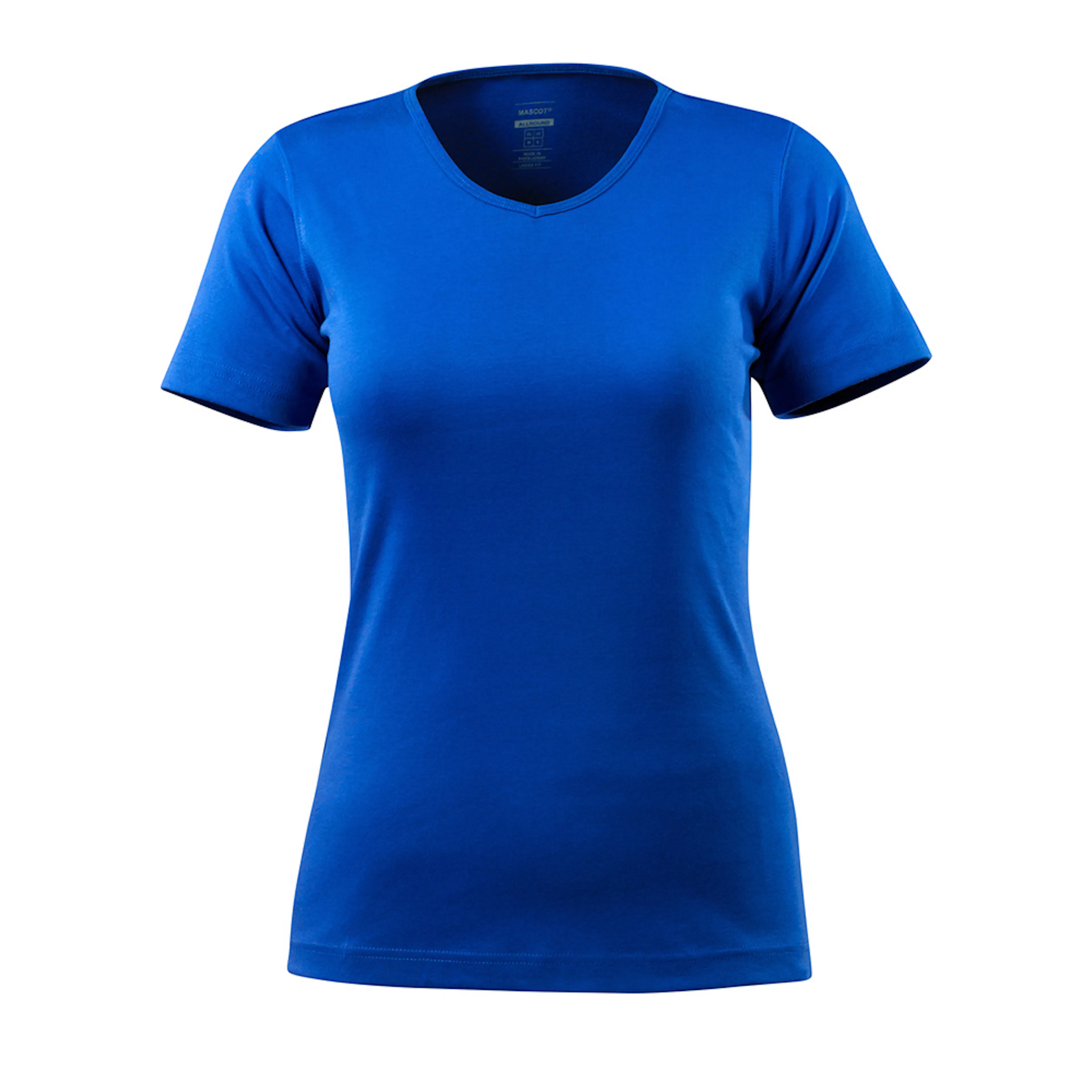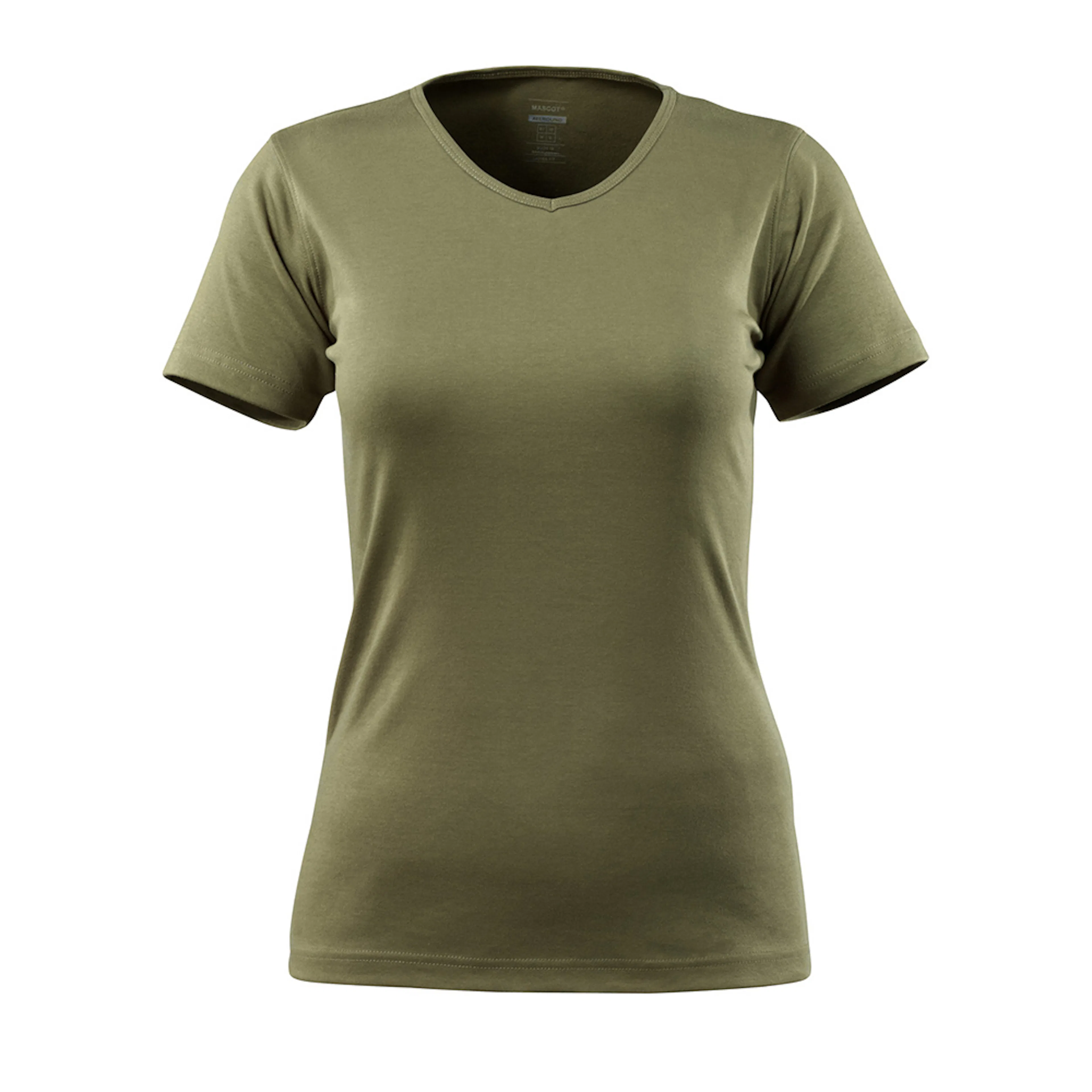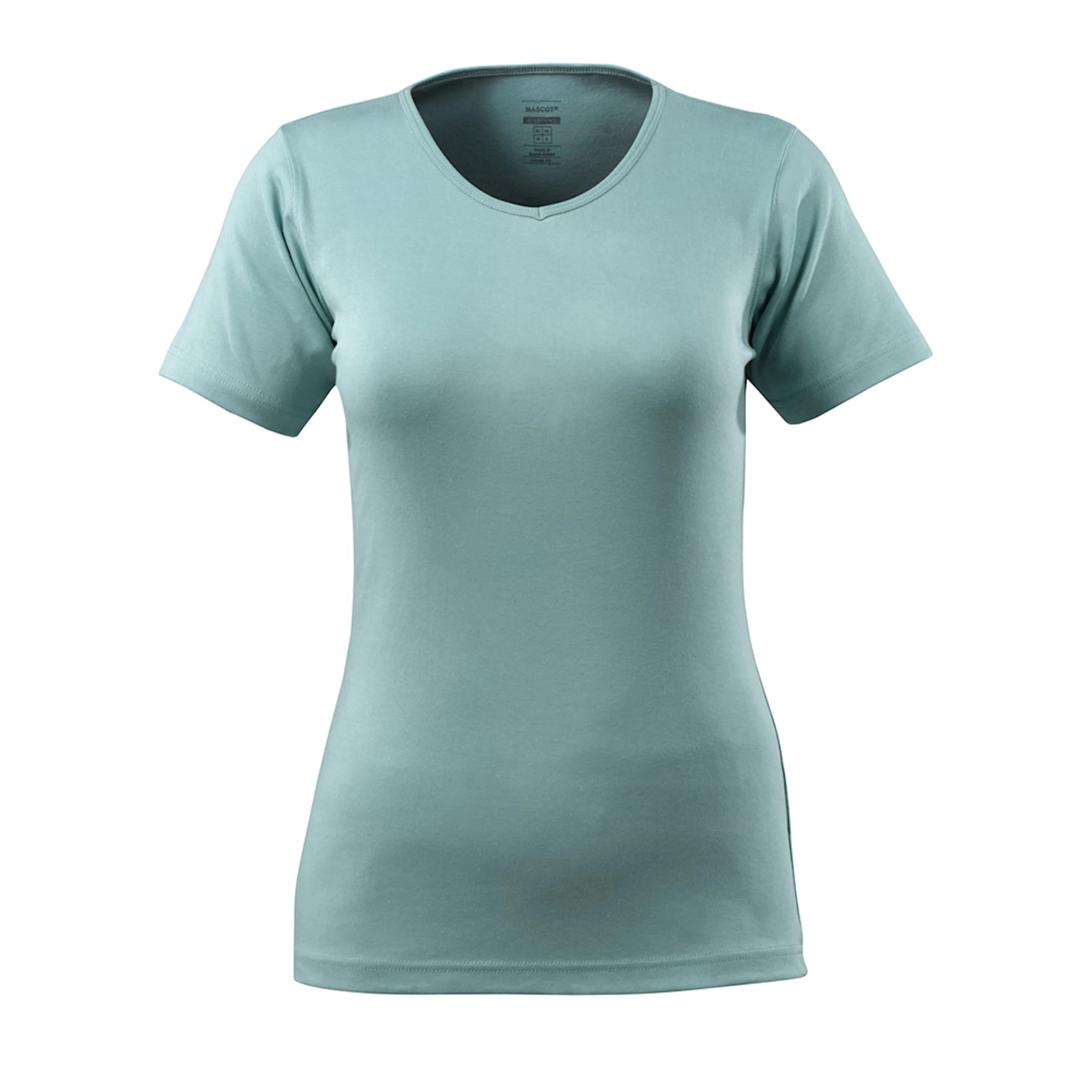 Lady passform. V-hals. Ribbstickning i halsen. Nackband.