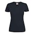 Modern V-ringad T-shirt med förstärkta axelsömmar och nacke. Dammodell. Stretchig 2-lagers ribb i halshål. Oeko-tex certifierad