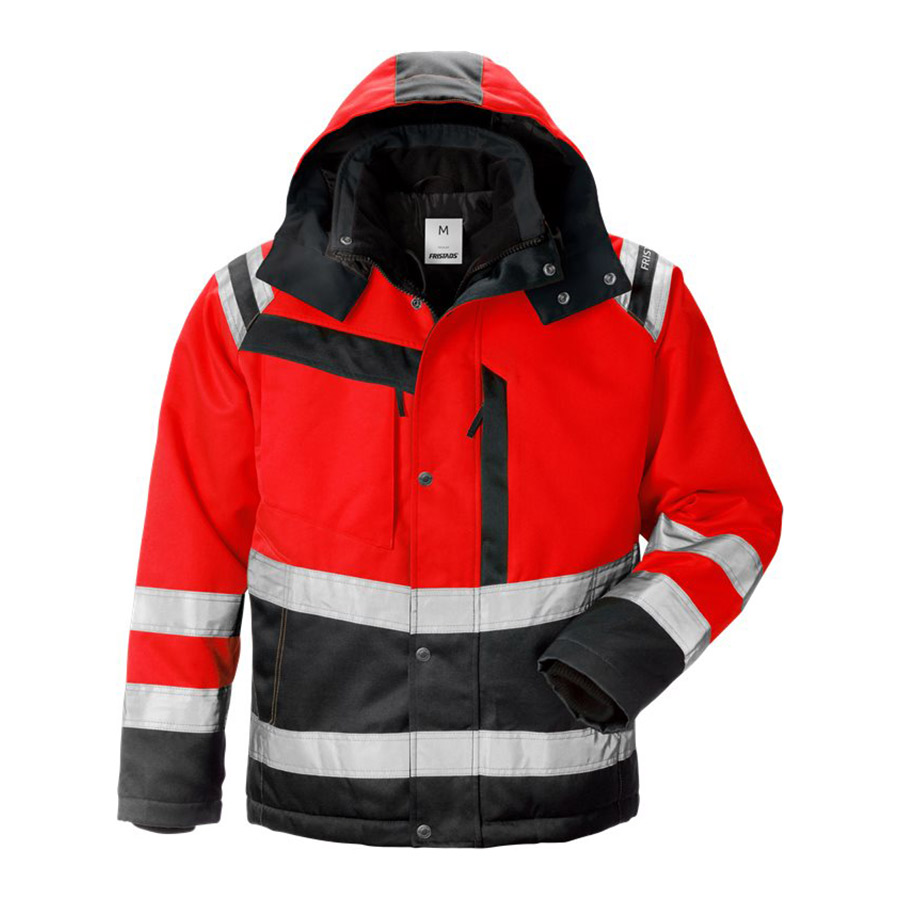 Slitstark varm varseljacka i smuts-, olje- och vattenavvisande material. Mjukt quiltfodrad jacka med avtagbar huva. Godkänd för industritvätt.