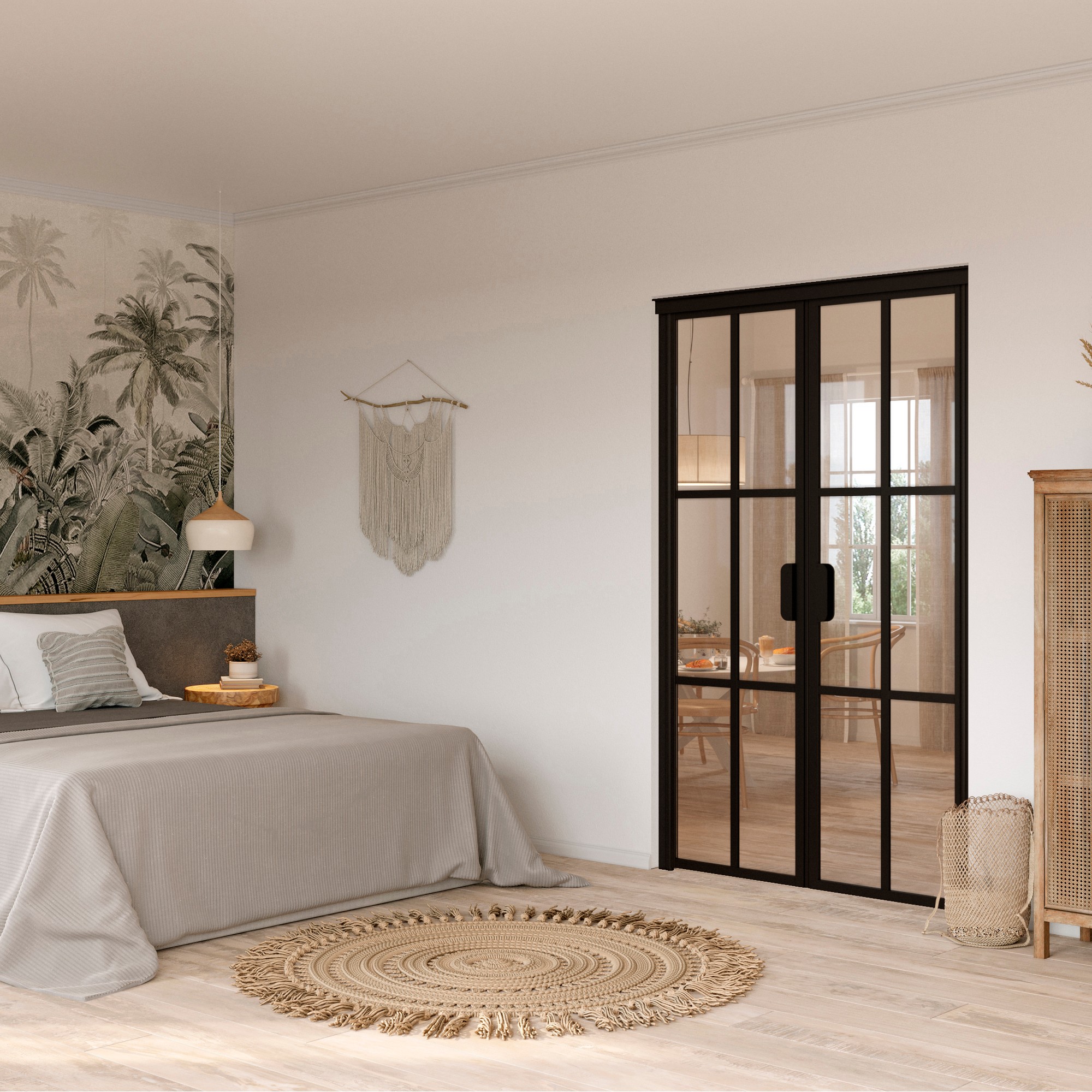 Pardörr Hietakari Bläk 785 Paris är symmetriska pardörrar i glas med aluminiumram.