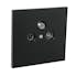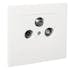 Antennuttag Plus, infälld. Komplett Radio/TV/Satellituttag inklusive kontaktdon. Satellituttaget är ett slututtag på 3dB och går inte att seriekoppla. Satellitutgången har en F-kontakt (hona). Centrumplatta och ram av halogenfri termoplast. Passar i apparatdosa med fästskruvavstånd 60.