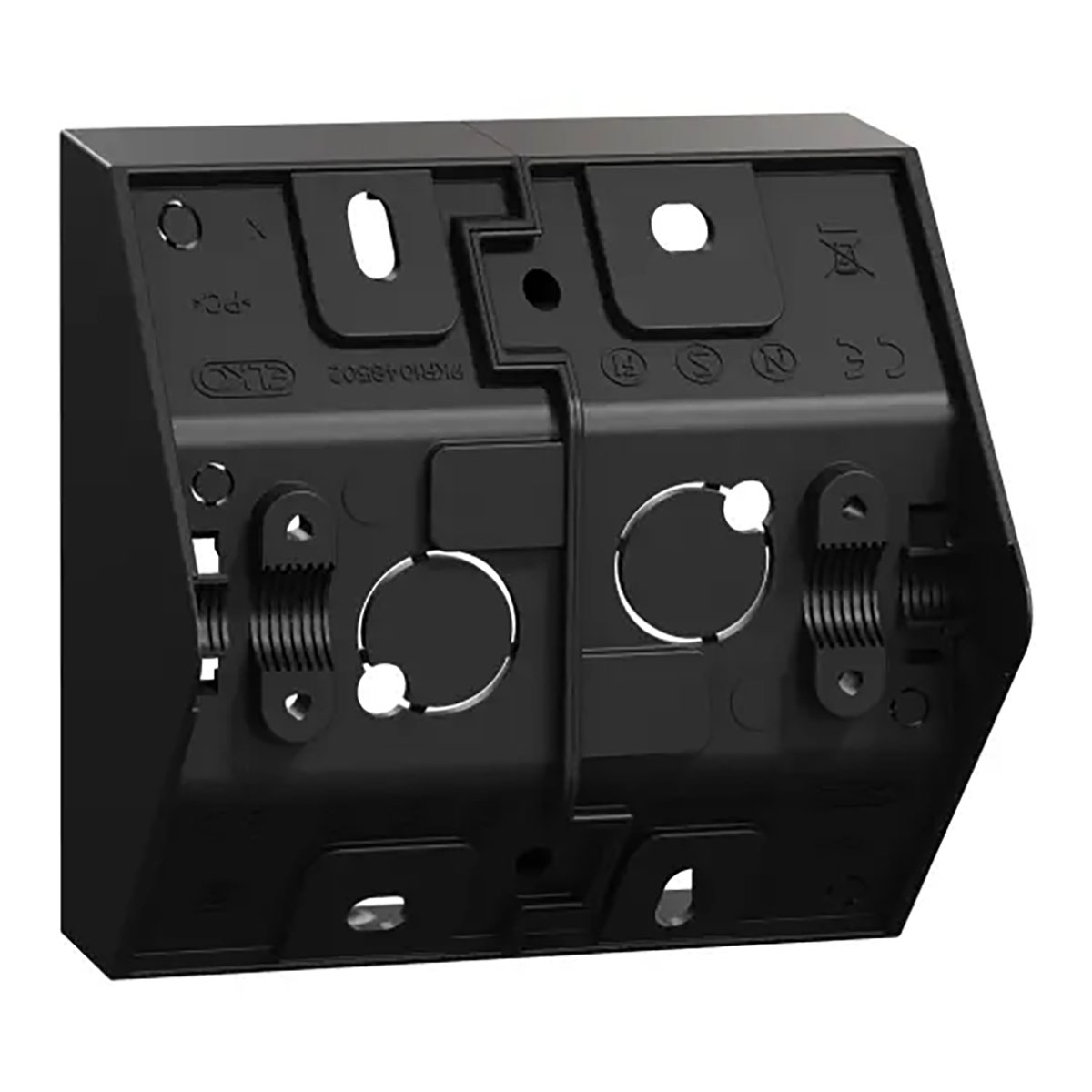 Hörnbox, Elko, One, plast, byggbar, ändstycke, 1-5-fack. Genom att sätta ihop två ändstycken skapas en 1-facks hörnbox. Genom att även lägga till ett mellanstycke i mitten skapas en 2-facks hörnbox. På så sätt kan en hörnbox från 1 till 5-fack enkelt skapas. Måtten på produkten är (B) 87 mm x (H) 87 mm x (D) 64 mm. Den är gjord av polykarbonat (PC). Skyddsklass IP21.