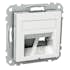 Vinklad centrumplatta från Schneider Electrics för 2xActassi-jack. Montage i apparatdosa cc 60mm alt utanpåliggande i dosa 35mm. Vridbar märkskylt med tre sidor blank, text, färgkodning. Kompletteras med RJ45-jack, Exxact-ram och ev färgkodning.