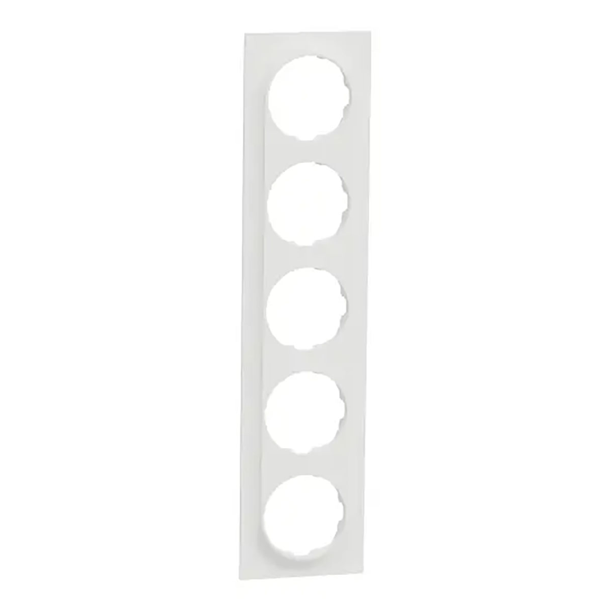 Ram, Elko, One, plast, 5-fack, lodrät, vågrät, montering. Den är extremt smal och ger en svävande effekt mot väggen. Den matta ytan i kombination med formen ger en svävande effekt, den matta ytan ger en speciell lyster. Elko One kombinationsram kan användas tillsammans med alla produkter med cirkulär c-platta i sortimentet. Denna enhet är utformad för att monteras infällt eller utanpåliggande.