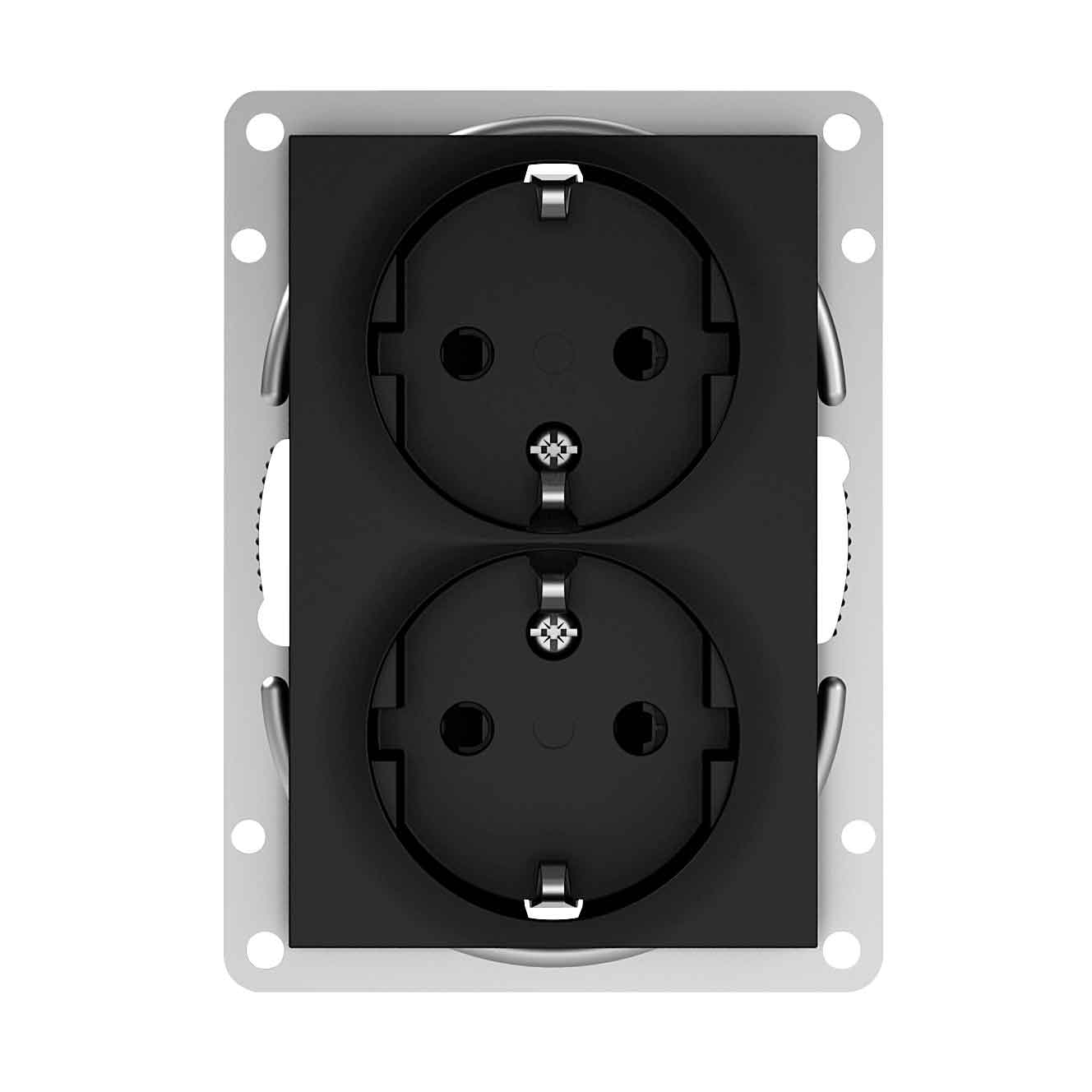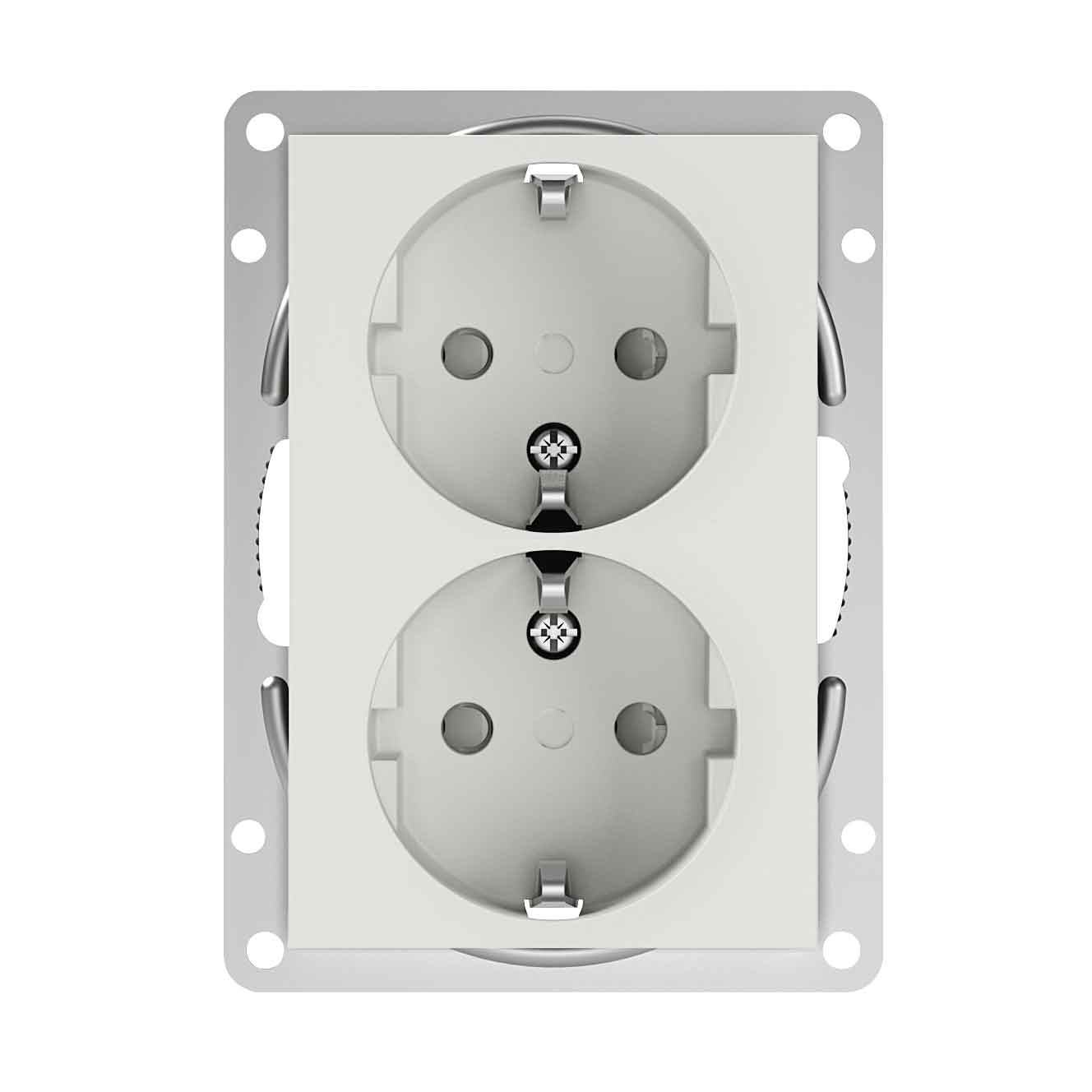 Vägguttag från Elko. Sockel och centrumplatta av halogenfri termoplast. Dubbla anslutningar per fas. Säkerhetsuttag. Fästskruvavstånd, 60 mm. Levereras utan kombinationsram. Lämpliga Option ramar 18 489 66, 76, 86, 96 och 18 490 66. Kräver 1½ dosa.
